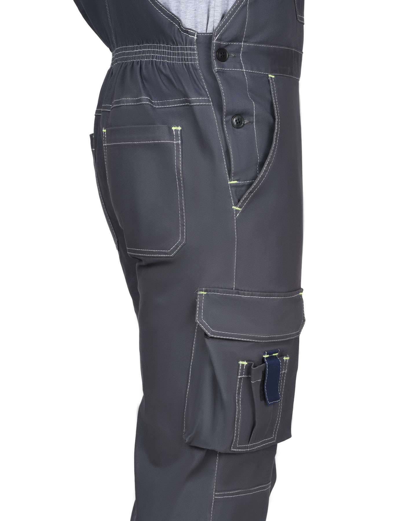 - Карманная система: нагрудник с трехсекционным карманом, нижние боковые карманы с наклонным входом и объемные карманы на боковых швах для хранения необходимых инструментов.