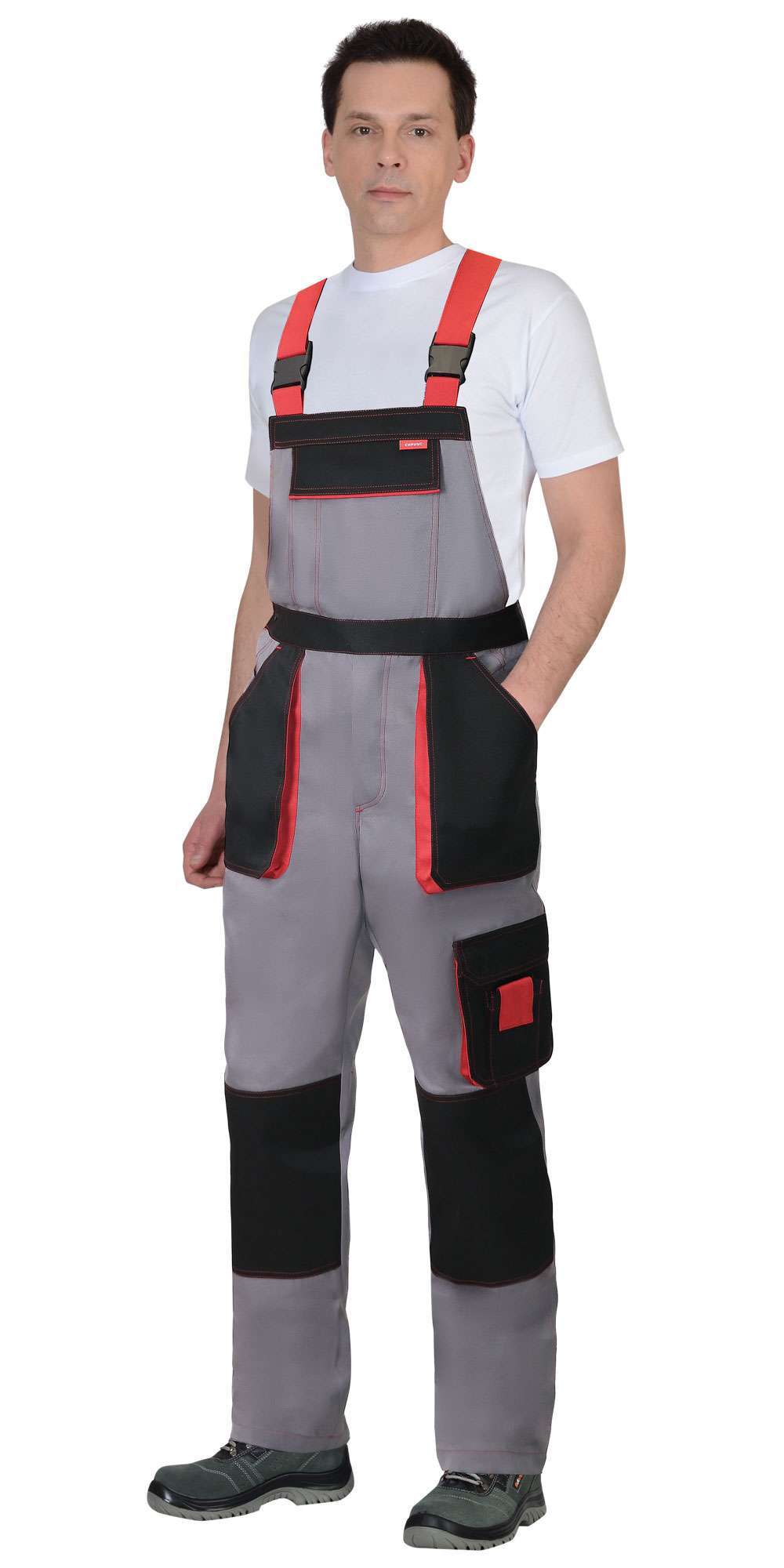 Полукомбинезон СИРИУС-CROWN серого цвета с черными и красными акцентами — это надежная и функциональная одежда для профессионалов. Его прямой крой, многофункциональные карманы и регулируемые бретели обеспечивают максимальный комфорт и удобство в работе. Изготовленный из высококачественной смесовой ткани с водоотталкивающей пропиткой, этот полукомбинезон станет идеальным выбором для предприятий, стремящихся к качеству и долговечности.