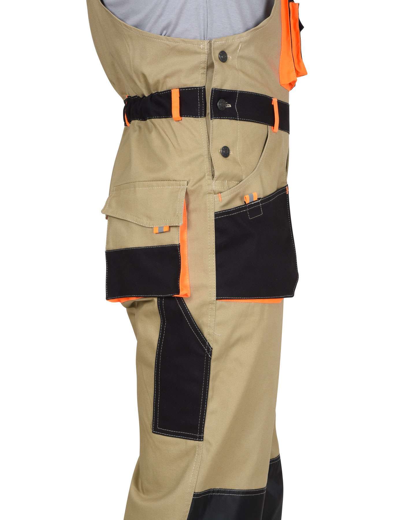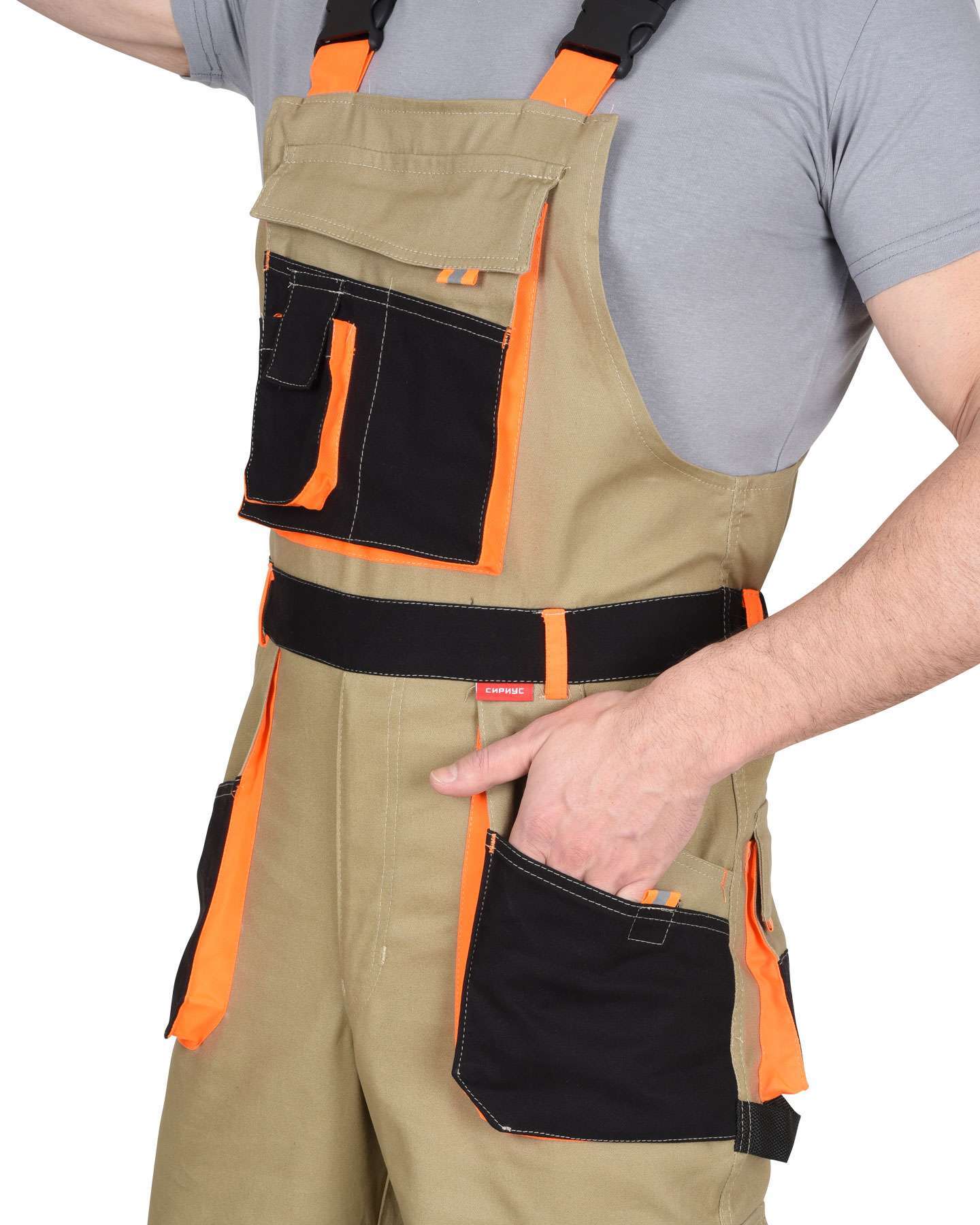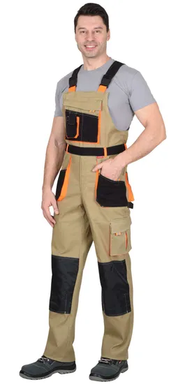 Полукомбинезон СИРИУС-МАНХЕТТЕН в песочном цвете с оранжевыми и черными акцентами — это высококачественная рабочая одежда, созданная для обеспечения максимального комфорта и функциональности. Изготовленный из механического стрейча с водоотталкивающей пропиткой, этот полукомбинезон идеально подходит для летнего использования, обеспечивая свободу движений и защиту от неблагоприятных погодных условий.