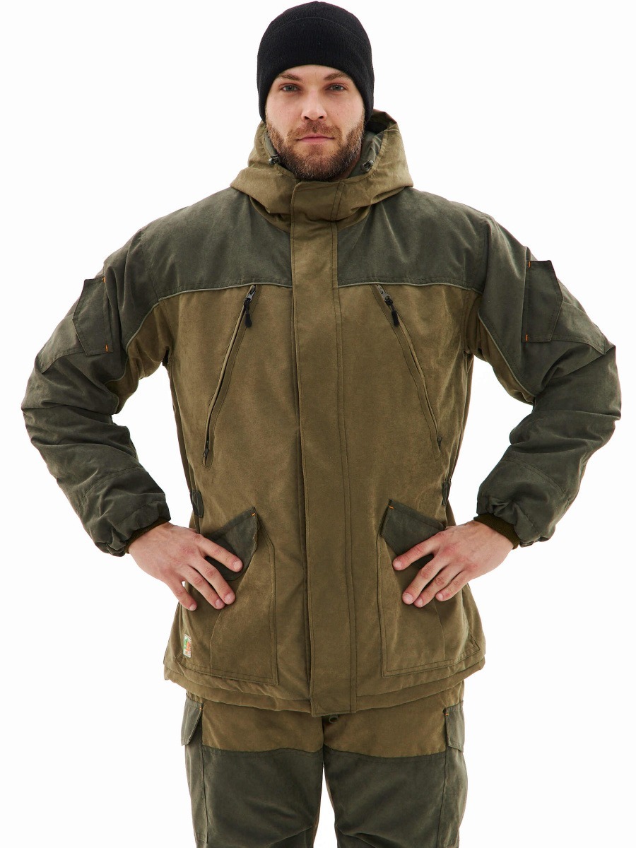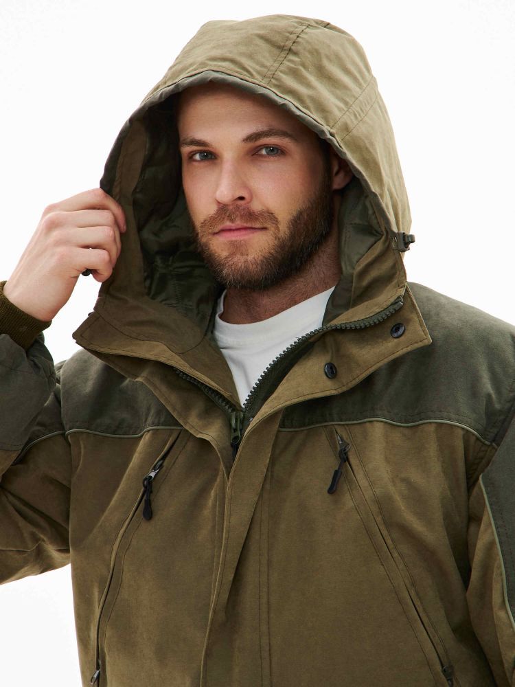 - Куртка: выполнена на подкладке из термостежки, с центральной застежкой на молнии и двумя ветрозащитными планками.