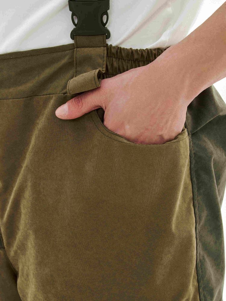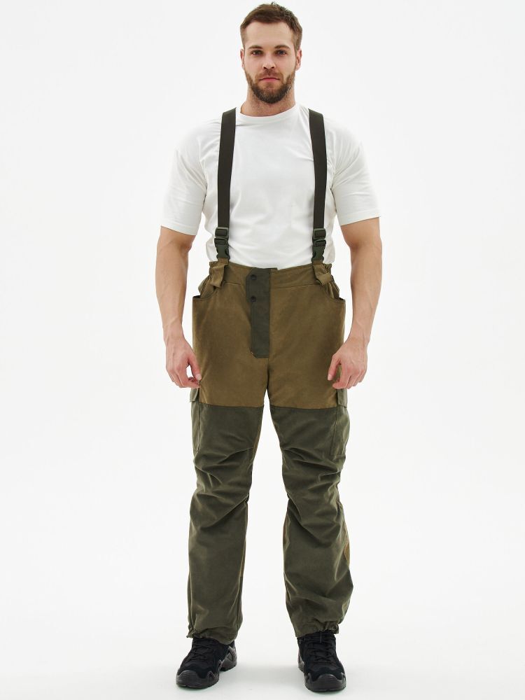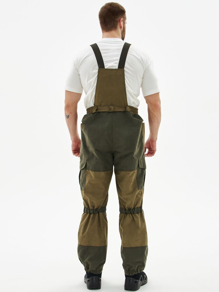 - Брюки: имеют широкий пояс с шлевками, боковые карманы и отстегивающуюся утепленную спинку на регулируемых бретелях.