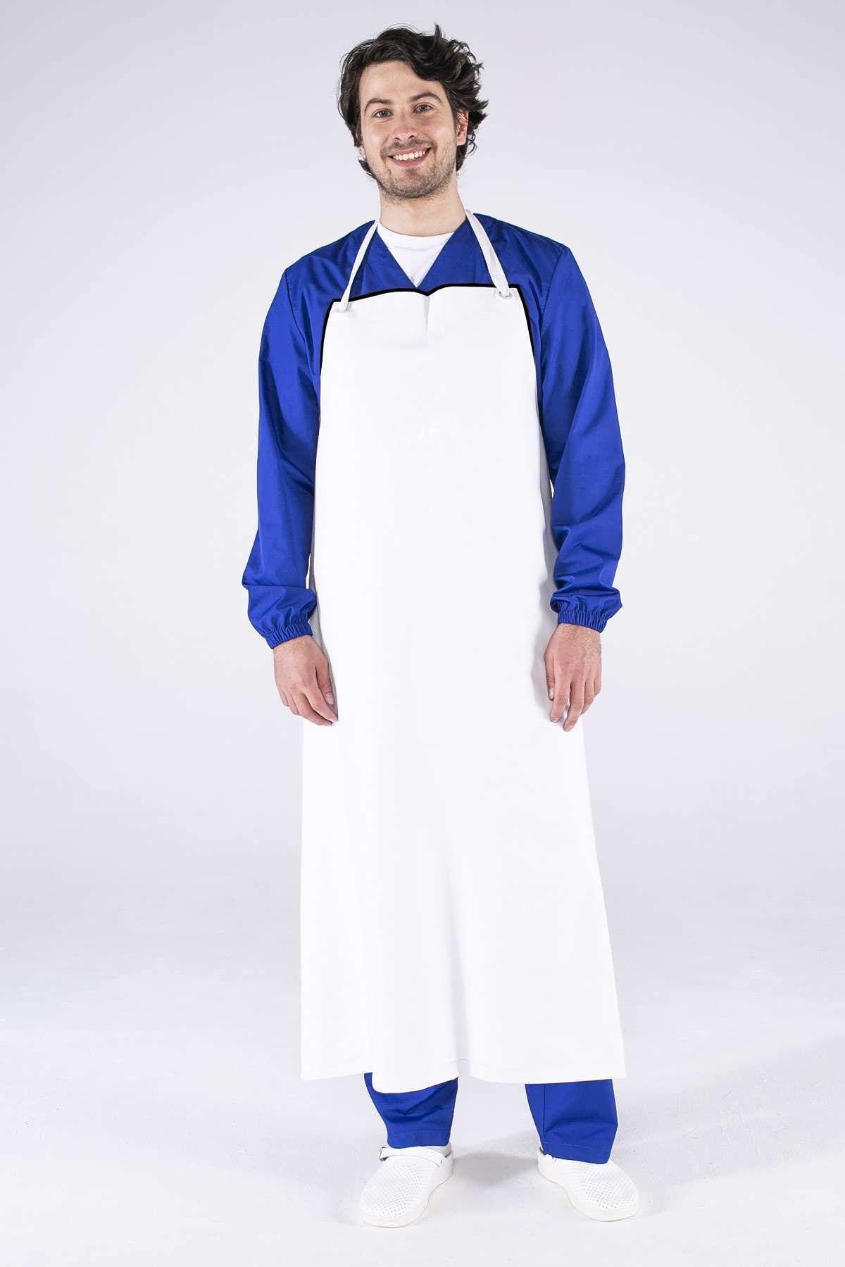 - Регулируемая шейная тесьма: пропущена через люверсы, что позволяет легко адаптировать фартук под индивидуальные параметры.