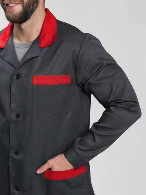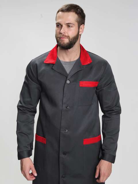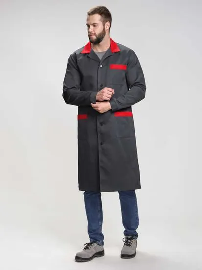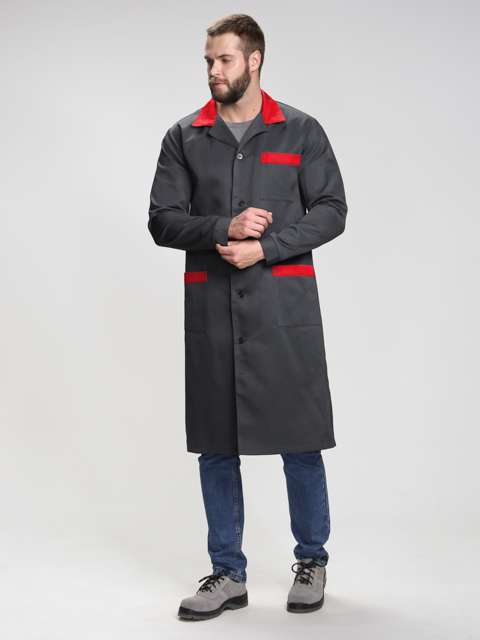 Халат мужской Технолог (тк.Смесовая,210), т.серый/красный