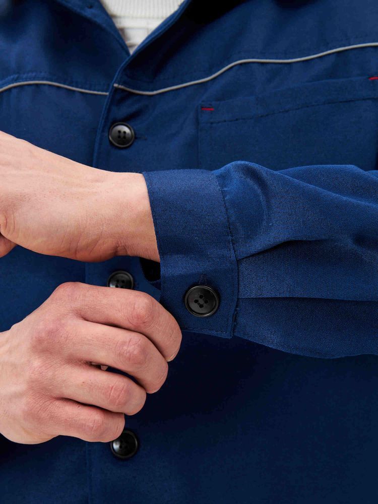 - Дизайн: Длинные рукава с манжетами и шлица на спинке для дополнительного комфорта при работе.