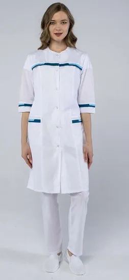 Халат «Лотос» женский белый - это не только стильный, но и функциональный элемент рабочей униформы, который идеально подойдет для медицинских учреждений, салонов красоты и других профессиональных сфер. Его полуприлегающий силуэт и элегантный дизайн обеспечивают комфорт и свободу движений, что особенно важно для сотрудников, проводящих много времени на ногах.