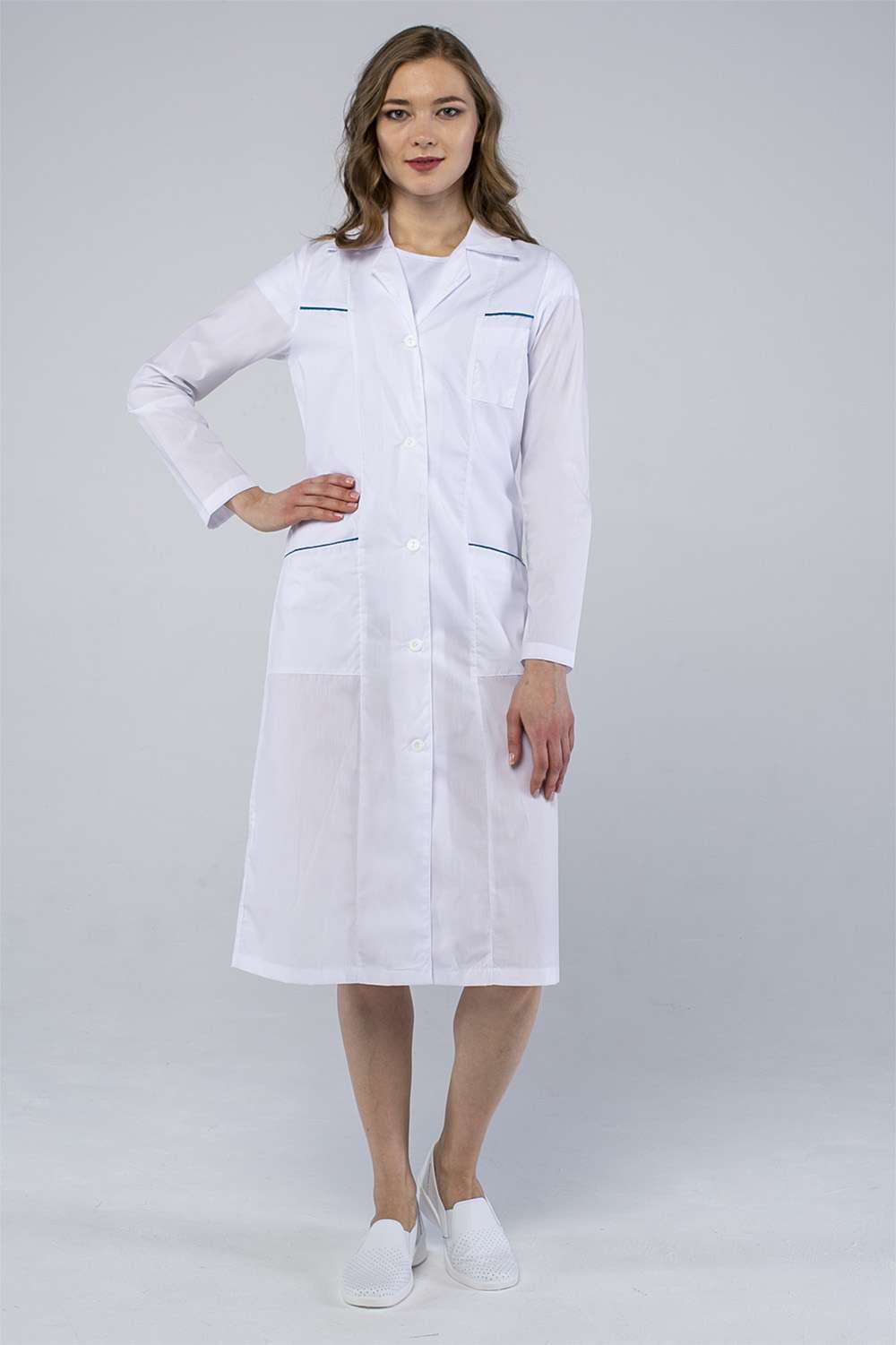 Халат «Магнолия» представляет собой стильное и функциональное решение для предприятий и заводов, где важна не только профессиональная, но и презентабельная форма сотрудников. Его прямой силуэт и длина ниже колена обеспечивают удобство и свободу движений, что делает его идеальным для длительного ношения.