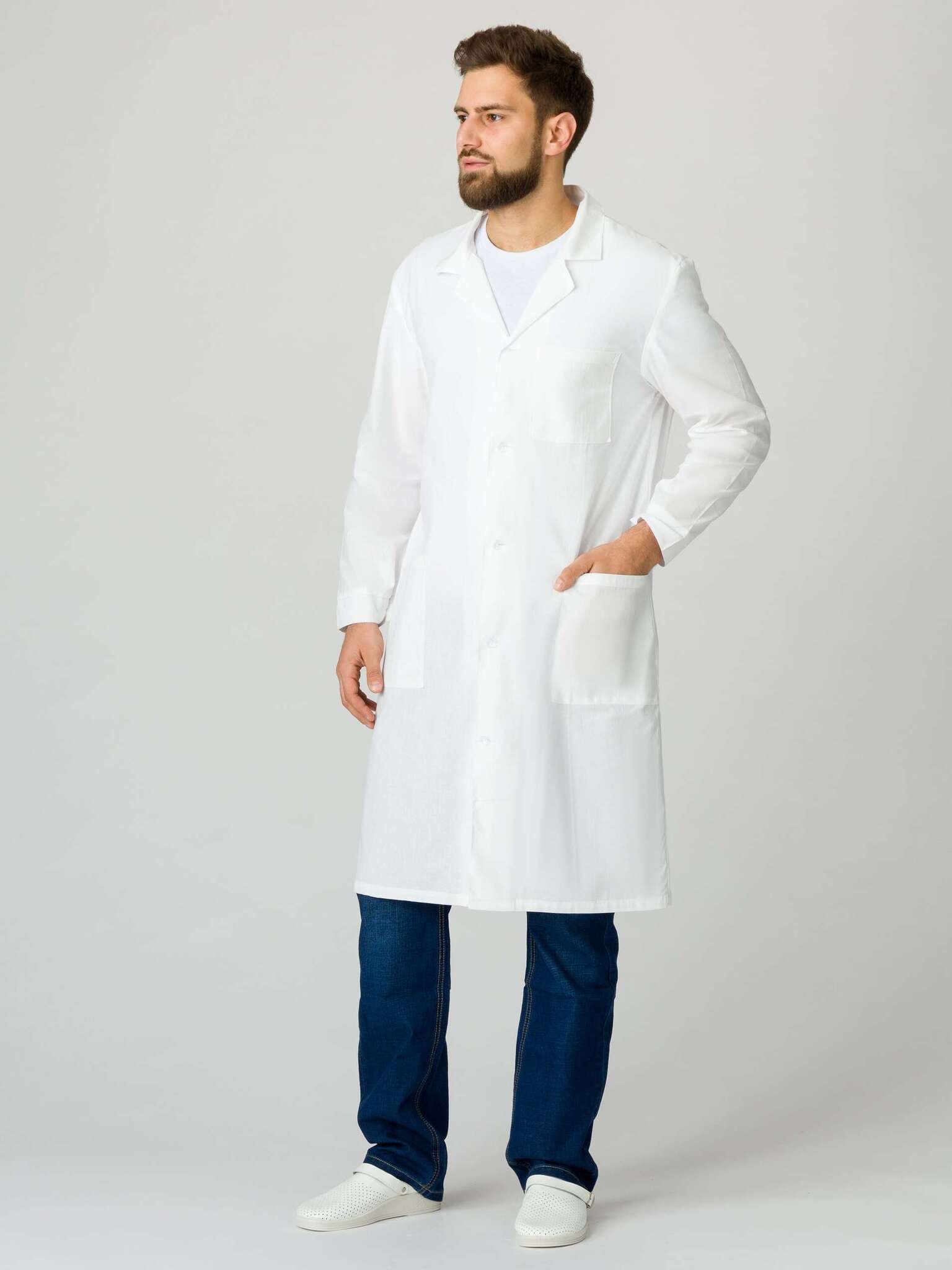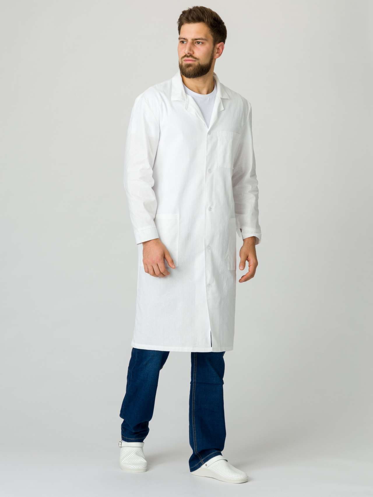 Представляем вашему вниманию мужской халат из ткани бязь плотностью 145 г/м², который станет идеальным выбором для предприятий и заводов, где важны комфорт и безопасность сотрудников. Этот халат отличается высокой прочностью и долговечностью, а также гипоаллергенными свойствами, что делает его подходящим для использования в различных сферах деятельности.