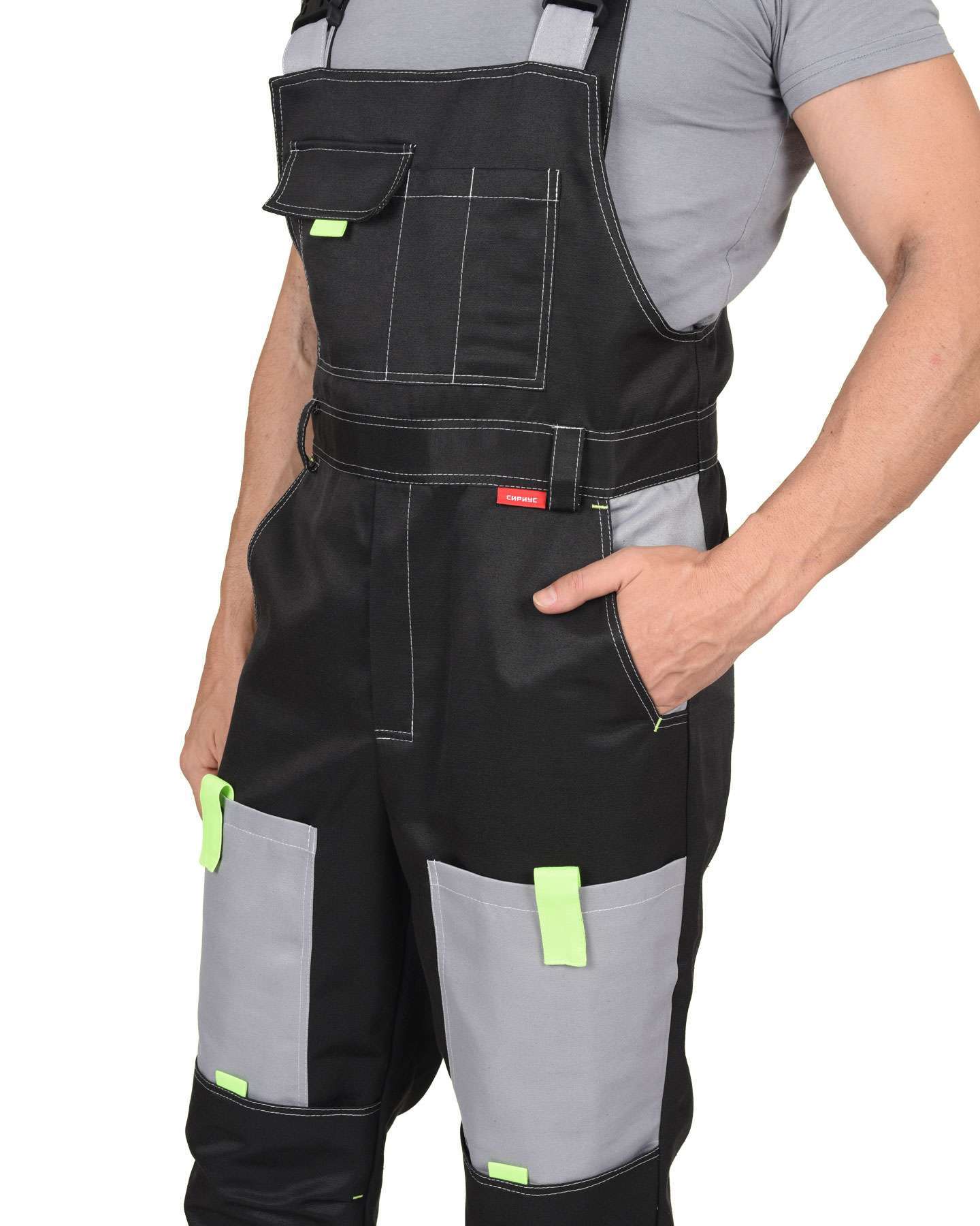 - Регулировка: Пояс и объем полукомбинезона регулируются, что позволяет индивидуально подстроить костюм под фигуру работника.
