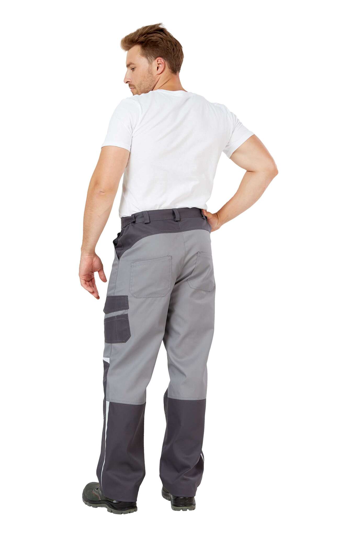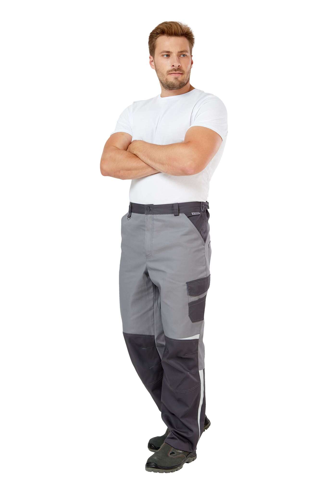 - Элементы защиты: светоотражающие элементы на уровне наколенников и боковых швах для дополнительной безопасности.