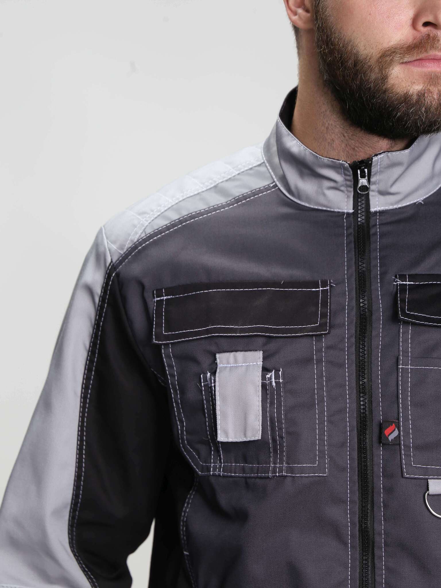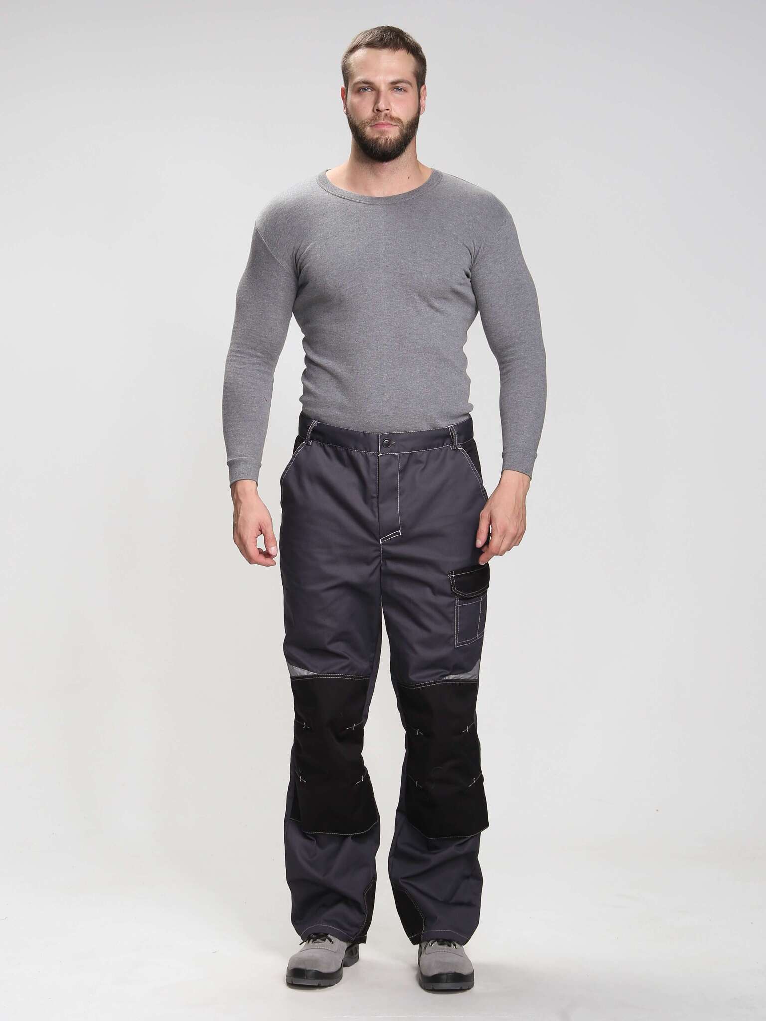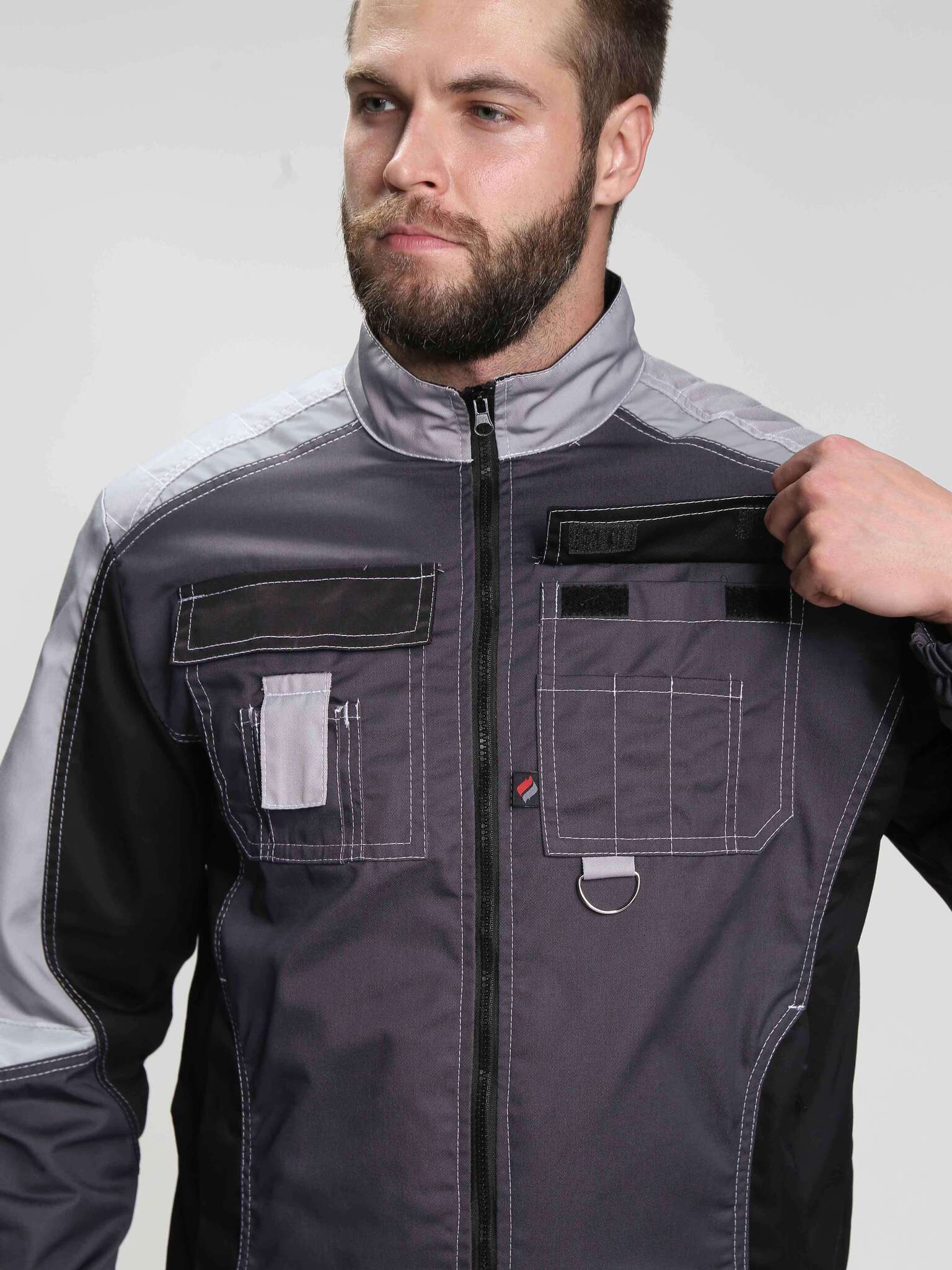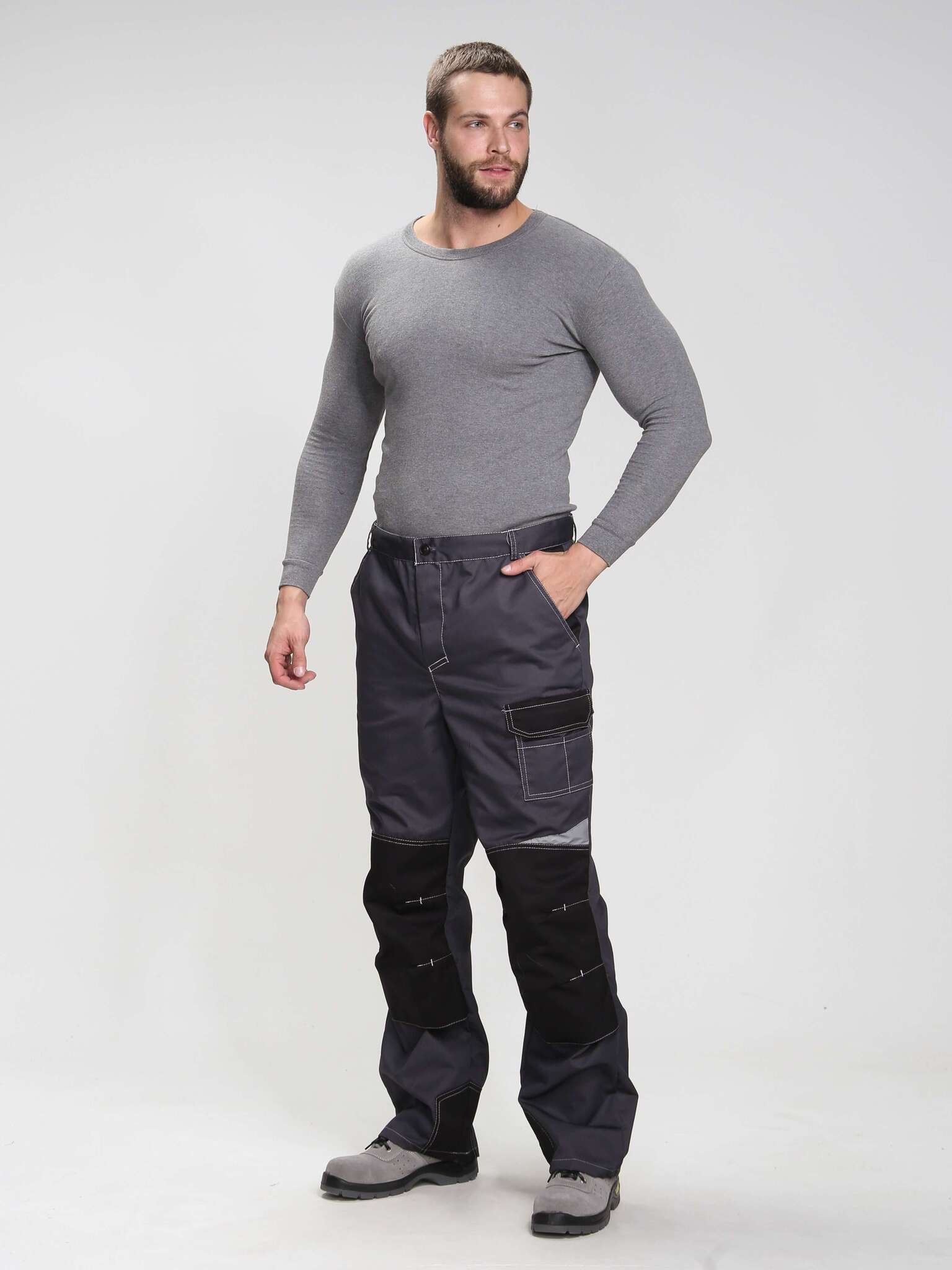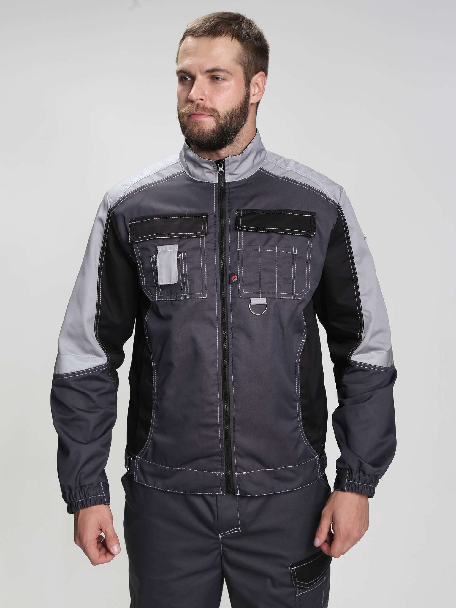 - Цвет: темно-серый с дополнительными светло-серыми и черными элементами, что позволяет легко сочетать костюм с различной рабочей обувью и аксессуарами.