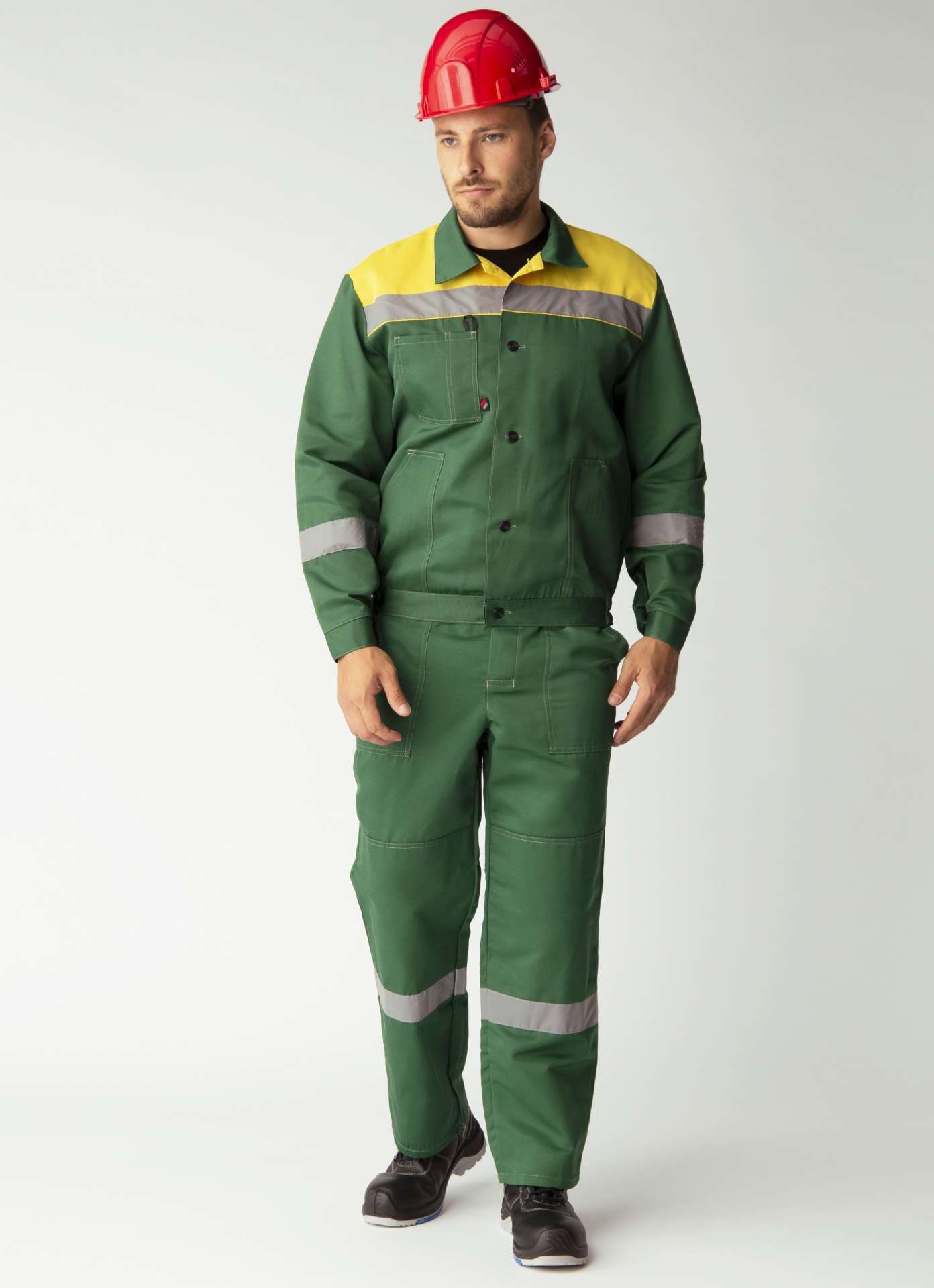 - Светоотражающие элементы: Полосы шириной 50 мм на спинке, полочках, рукавах и низу брюк для повышения видимости в условиях низкой освещенности.