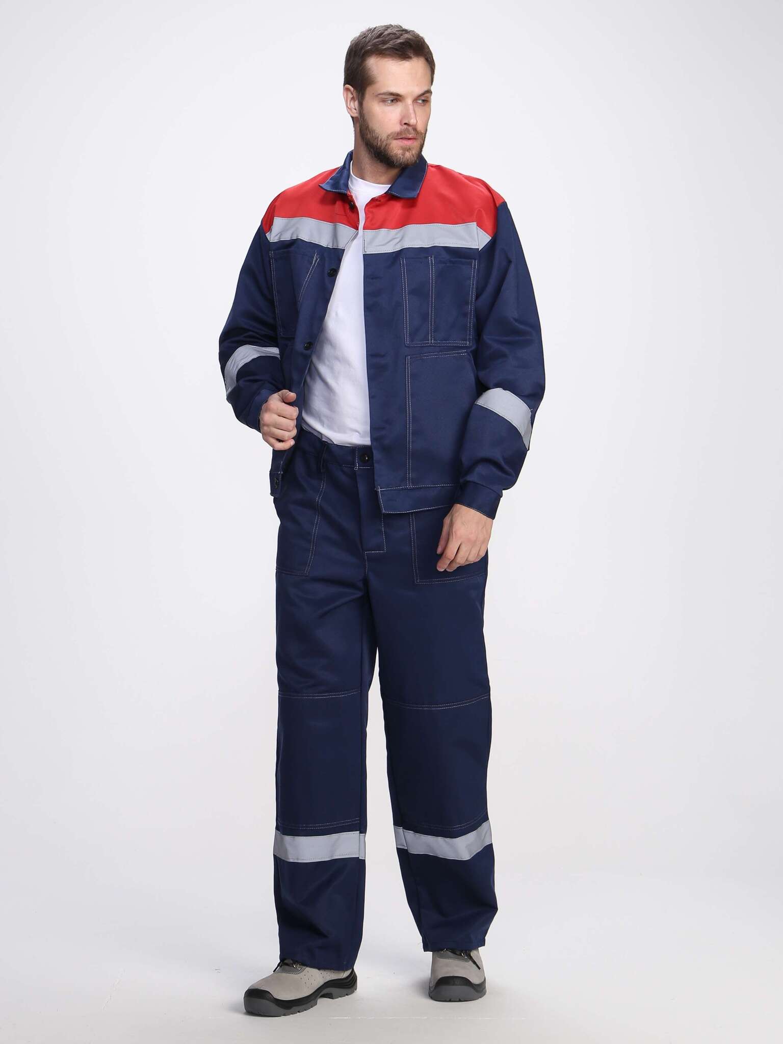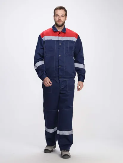 - Светоотражающие элементы: Полосы шириной 50 мм на спинке, полочках и низу брюк обеспечивают видимость в условиях низкой освещенности.