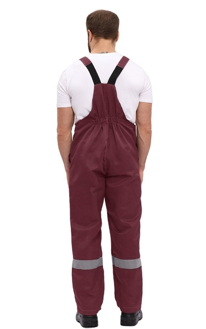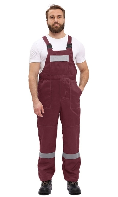- Полукомбинезон: регулируемые бретели, нагрудный карман с защитным клапаном и центральная застежка на молнии для легкости использования.
