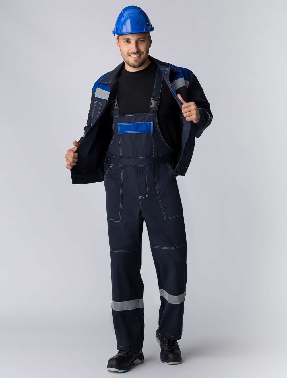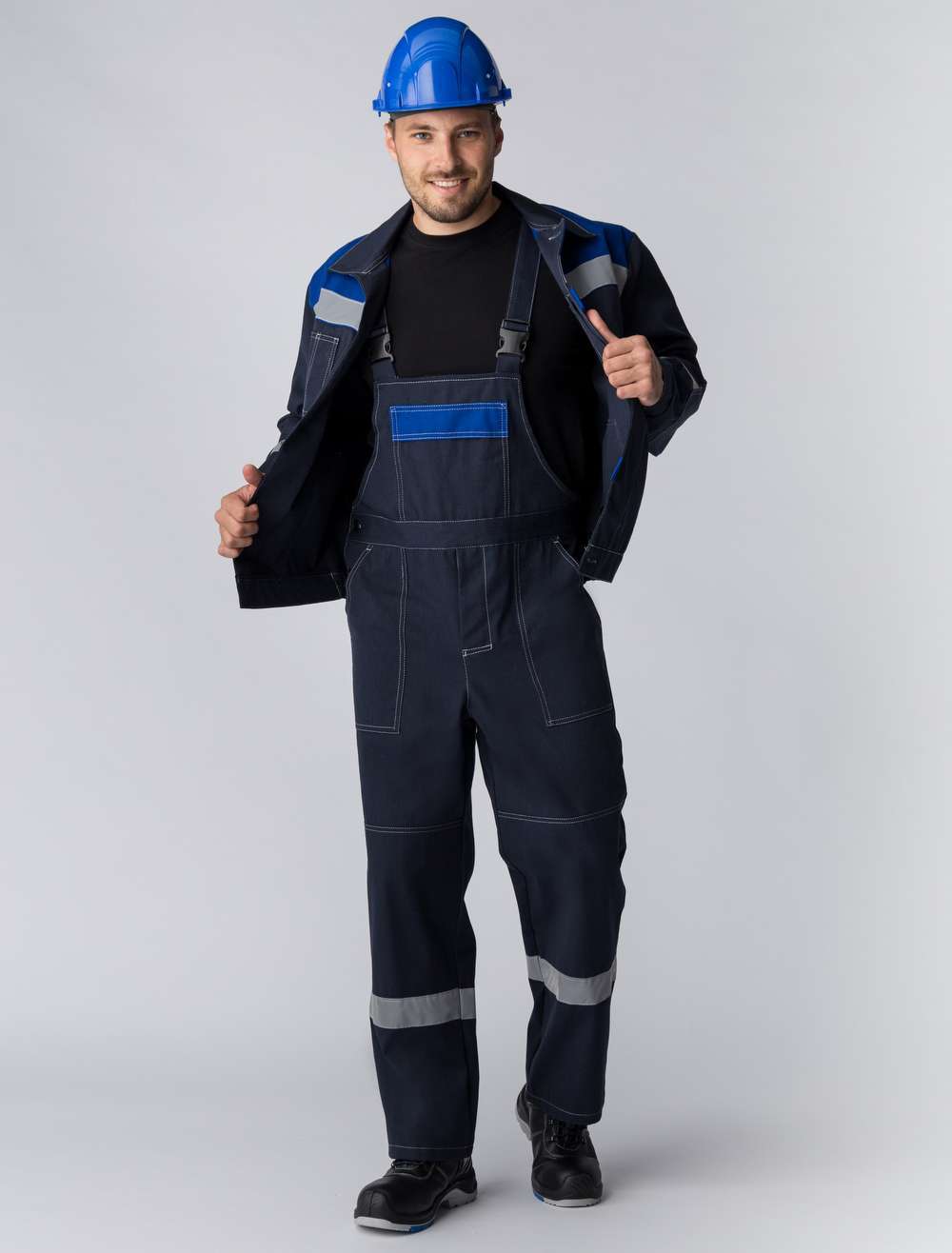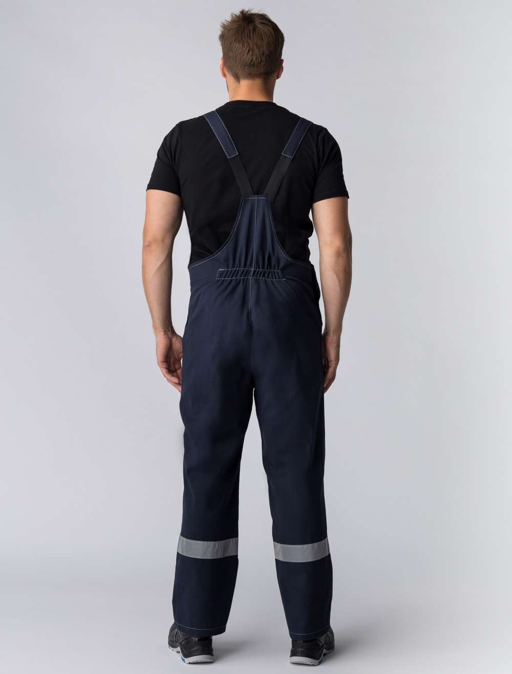 - Полукомбинезон: накладные карманы, усилительные накладки на коленях, регулируемые бретели и кулиса на спинке.