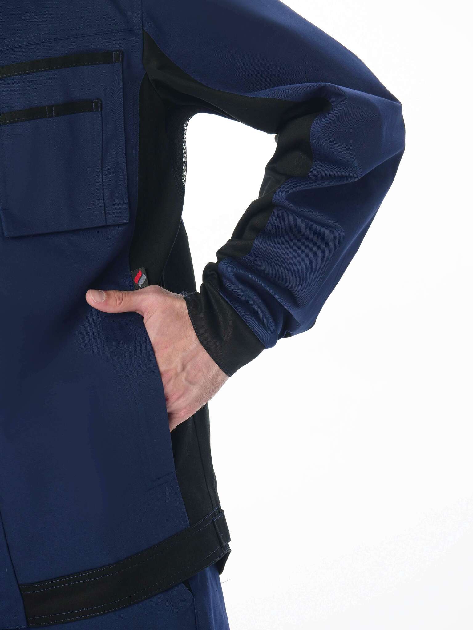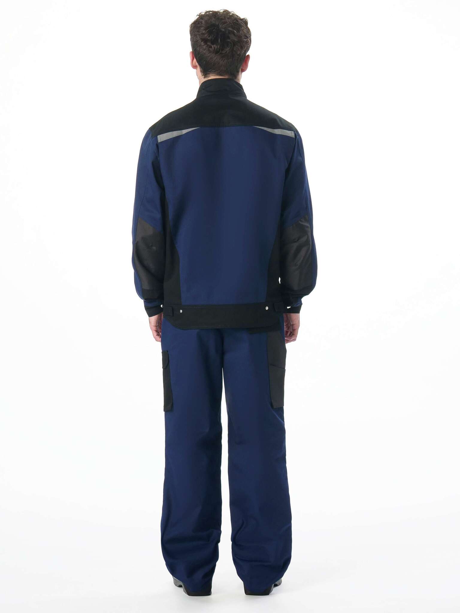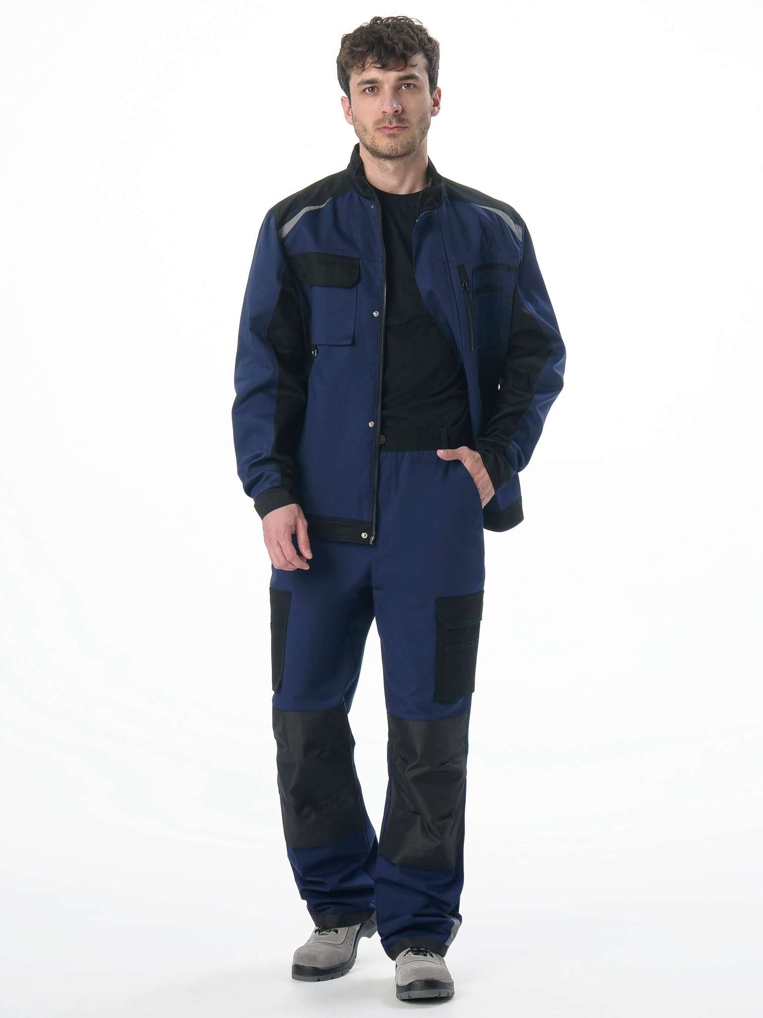 - Куртка: Укороченная, с центральной застежкой на молнию и ветрозащитной планкой. Нагрудные карманы с клапанами и дополнительными отделениями обеспечивают удобный доступ к необходимым инструментам.