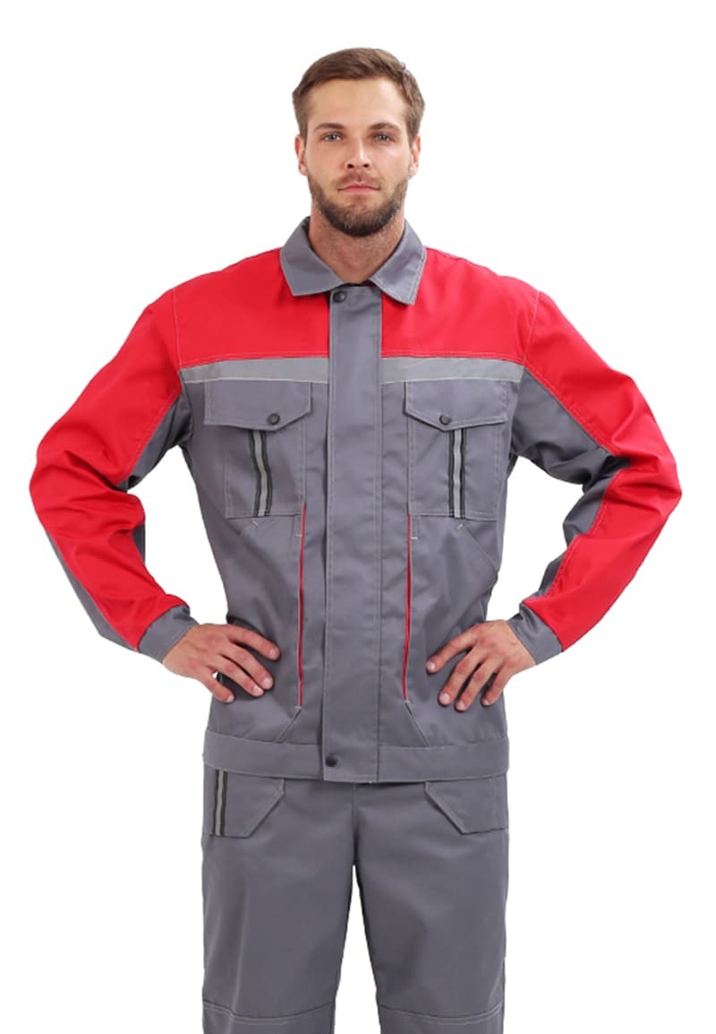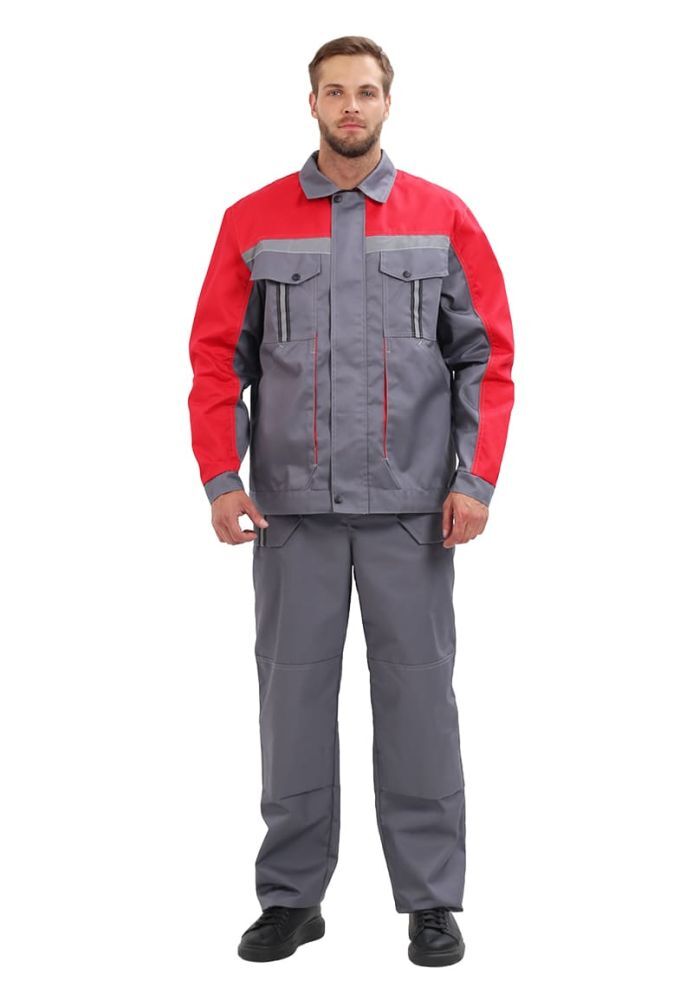 Костюм мужской Оптимальный летний с брюками серый/красный