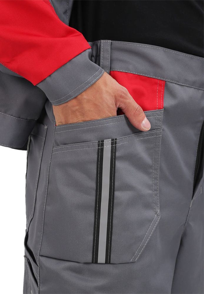 - Брюки: прямые, с притачным поясом и регулируемыми боковыми резинками; многофункциональные карманы, включая карман для инструментов и усилительные накладки в области колена.