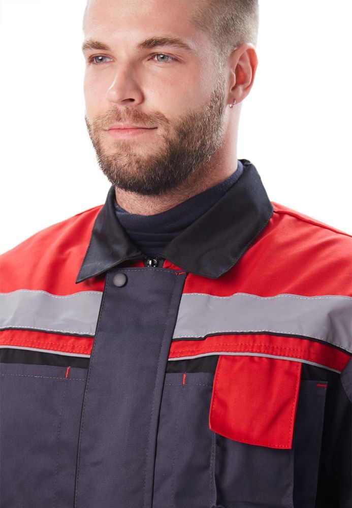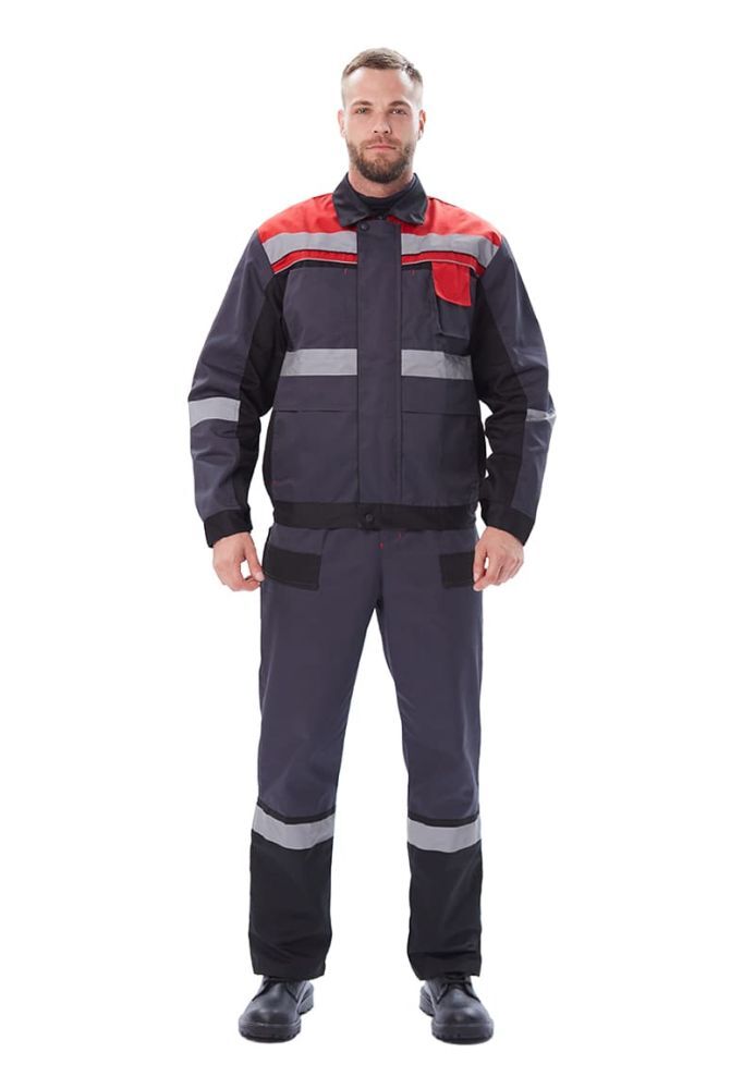Костюм мужской Виватный летний с полукомбинезоном т.серый/черный/красный