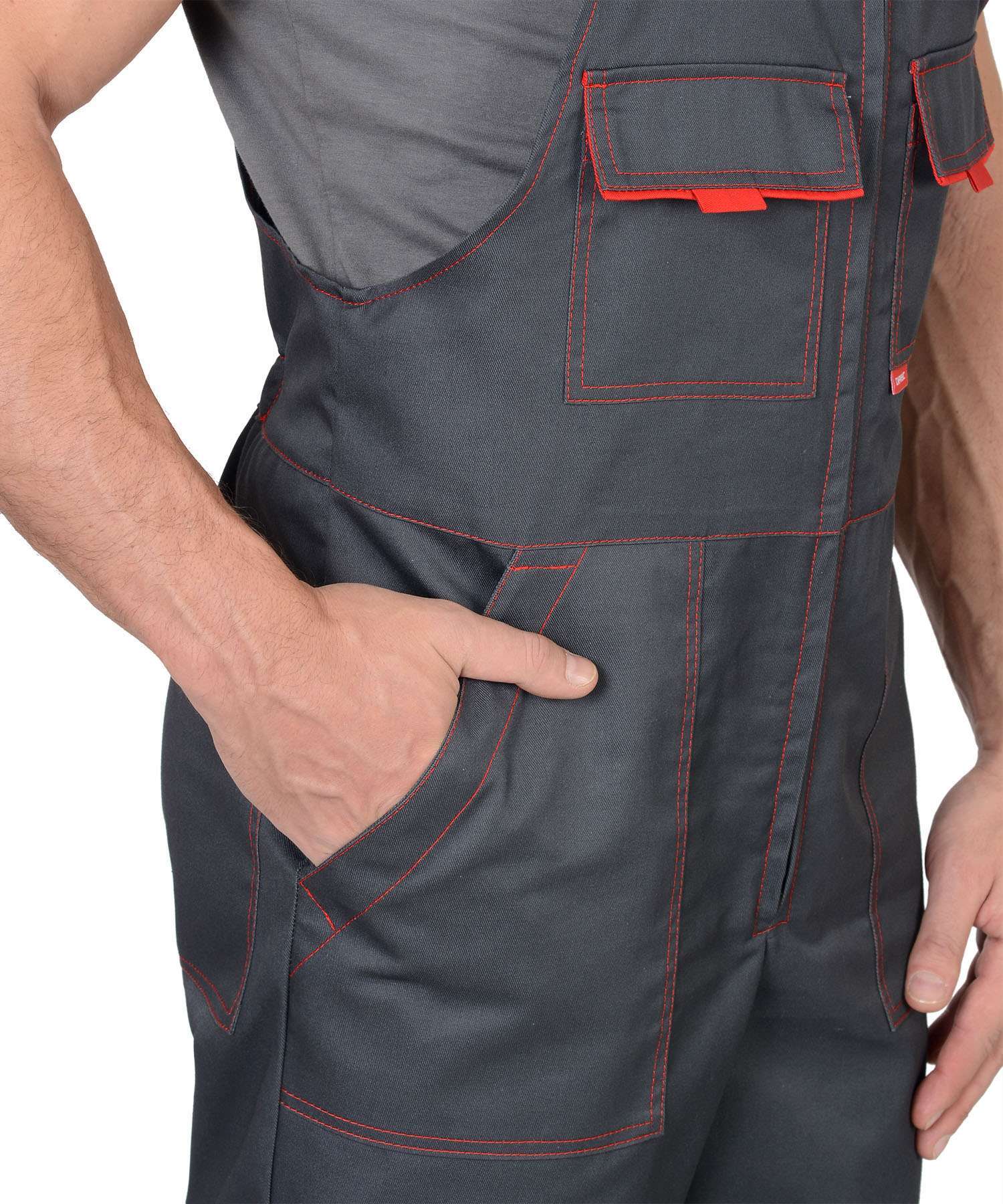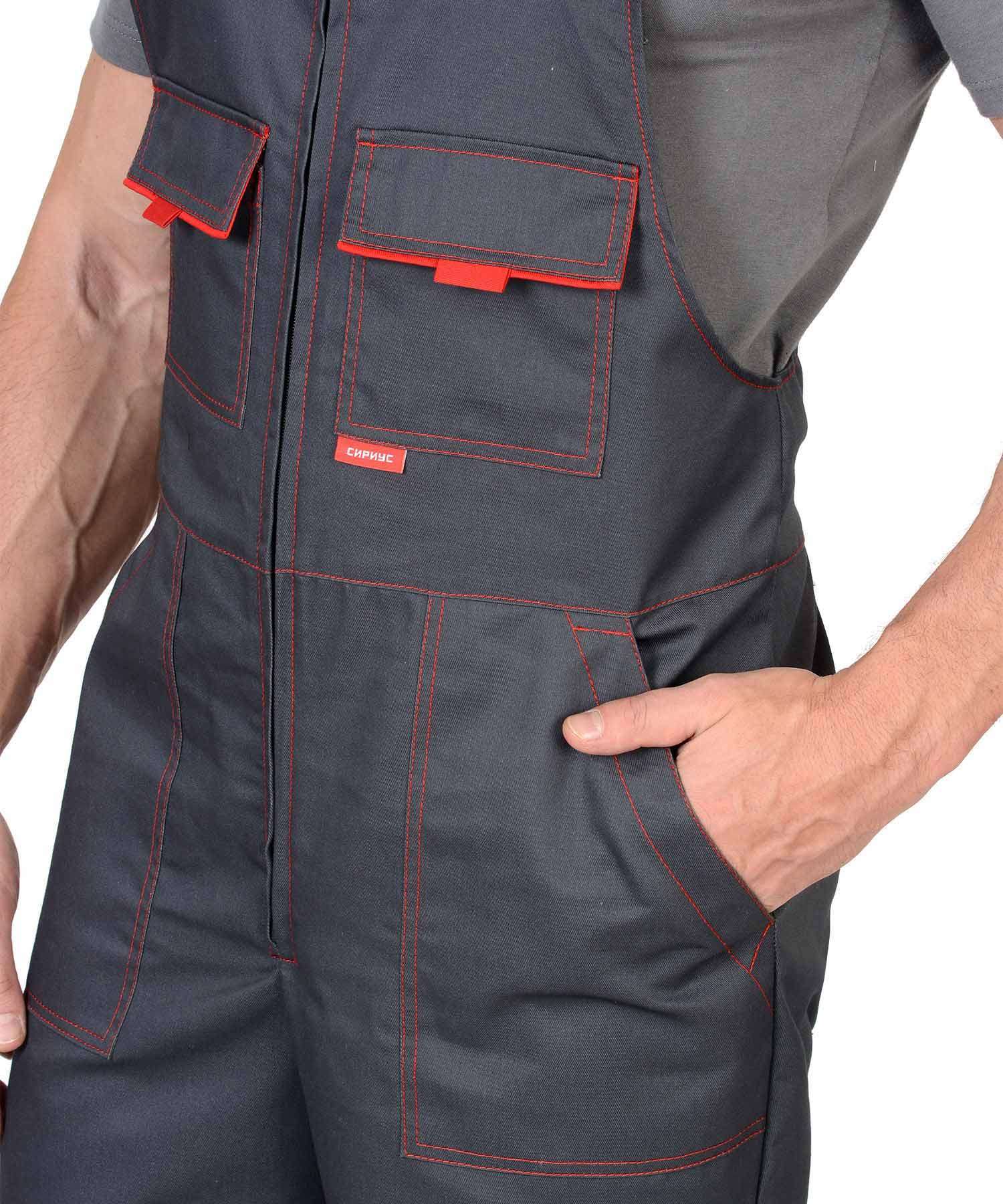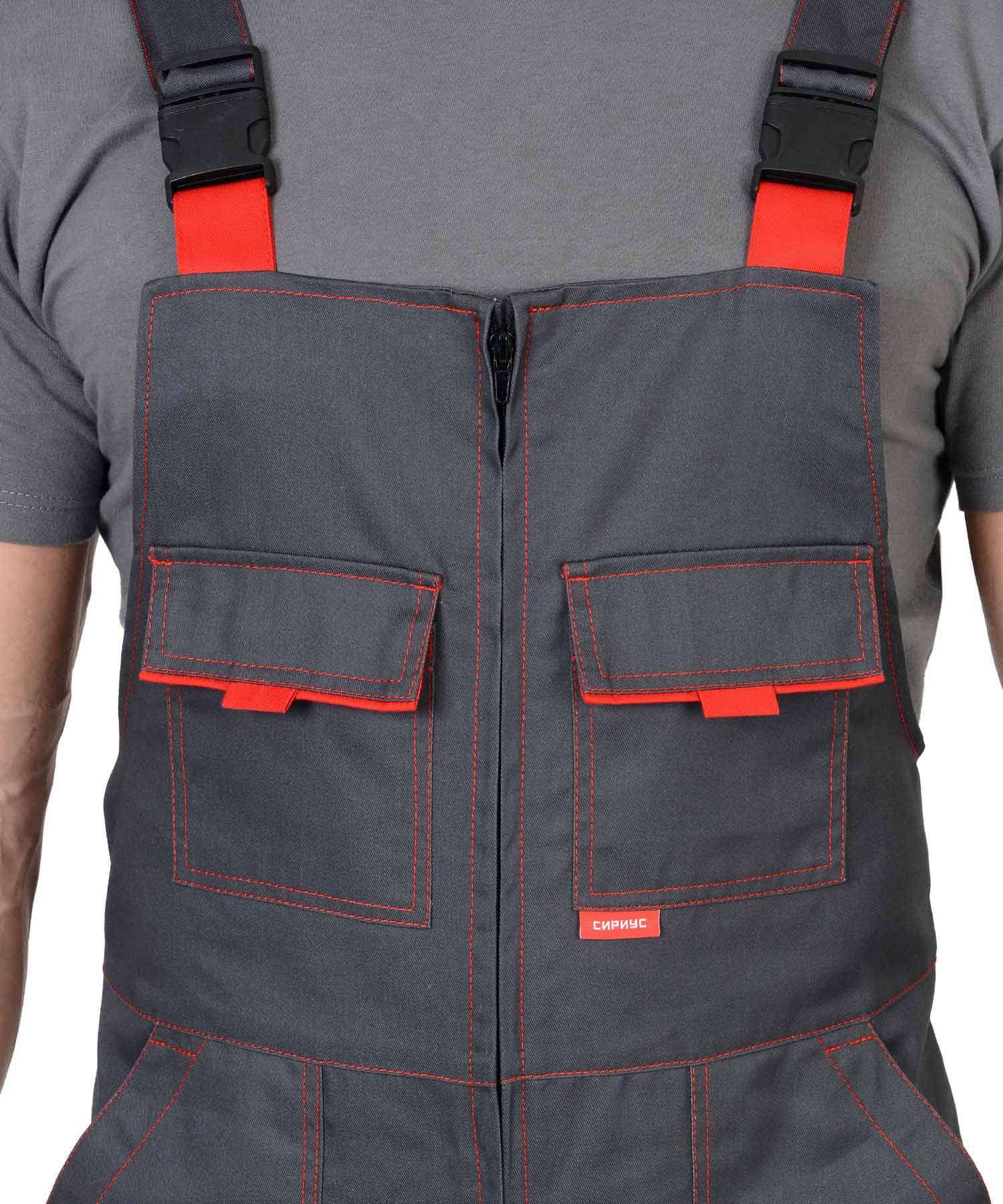 - Полукомбинезон: Центральная застёжка на молнию, отрезная грудка, наколенники и эластичная лента по спинке для лучшего прилегания делают его удобным в носке.