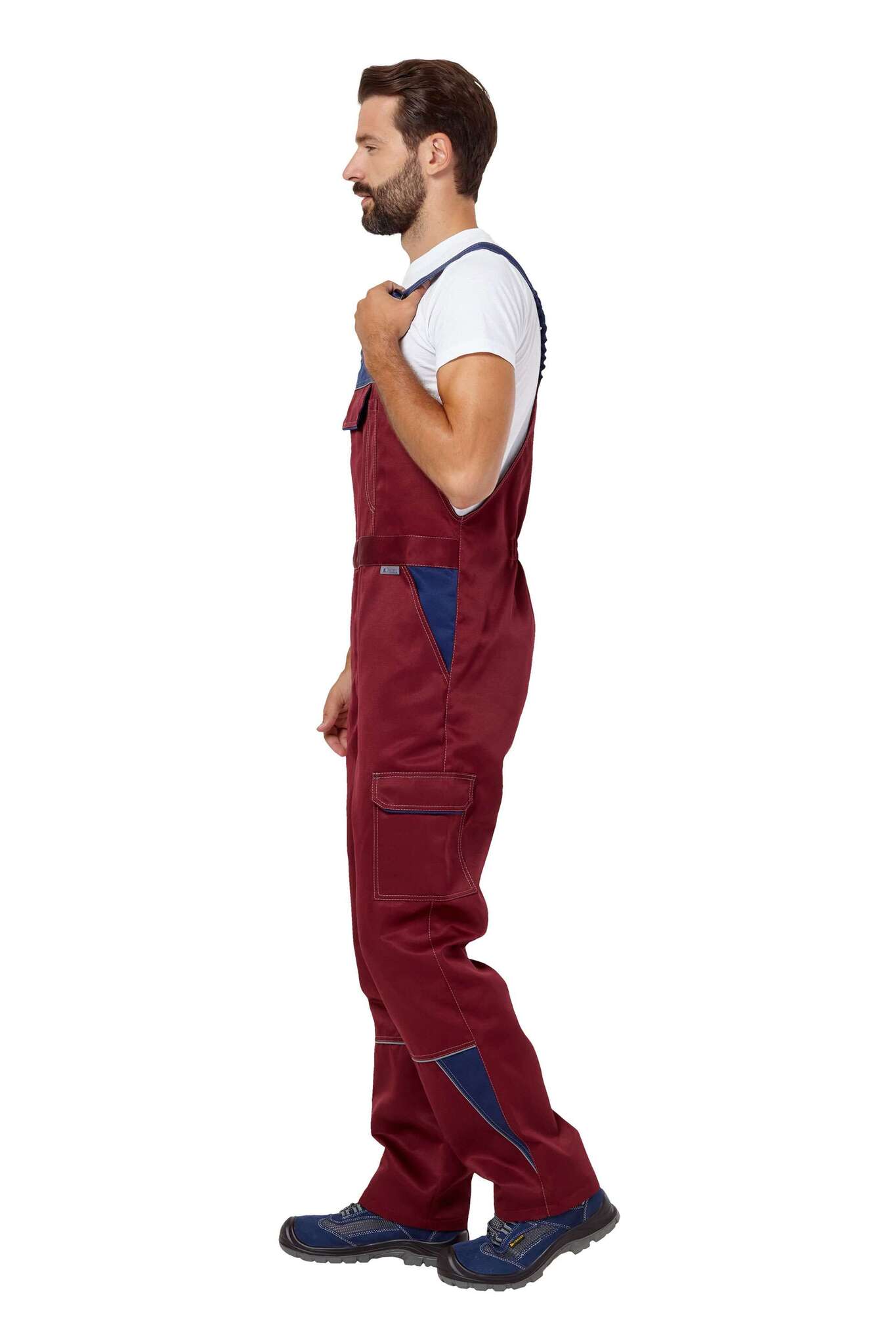 - Полукомбинезон: Центральная молния и боковые пуговицы, нагрудный карман с отделением для канцелярии, а также карманы для инструментов.