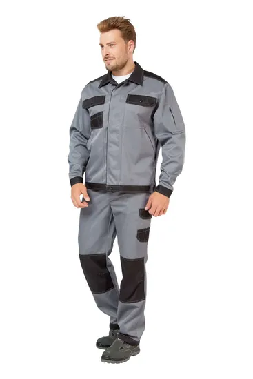 Костюм 'Умелец 1' в сером и черном цветах - это надежная защита от производственных загрязнений, обеспечивающая комфорт и свободу движений. Разработанный с учетом потребностей работников, этот комплект состоит из куртки и брюк, которые идеально подходят для различных сфер деятельности, включая строительство, производство и сервисные услуги.