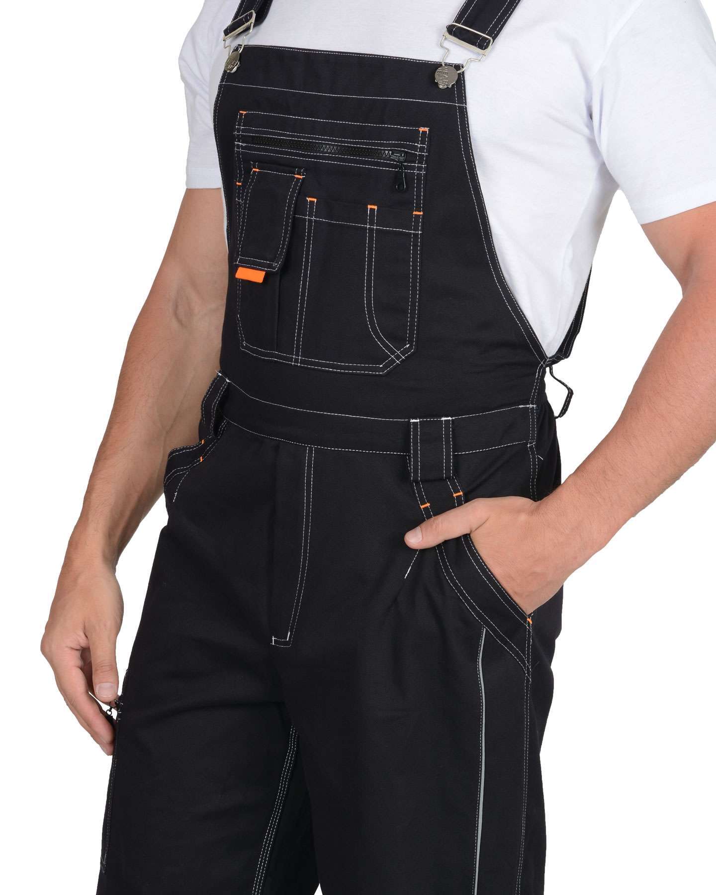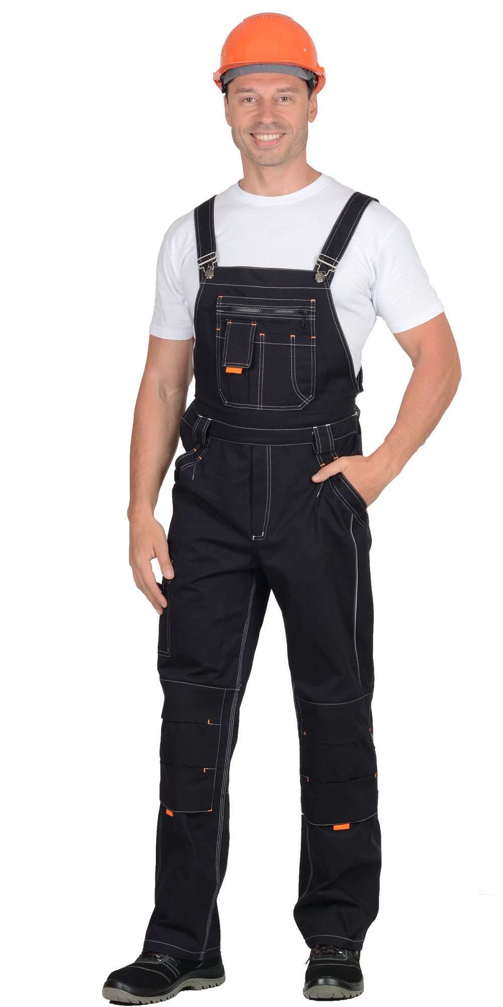 - Полукомбинезон: имеет застежку гульфика на молнию и боковую застежку на пуговицы. Накладной карман нагрудника и объемные наколенники с амортизационными вкладышами обеспечивают дополнительный комфорт.