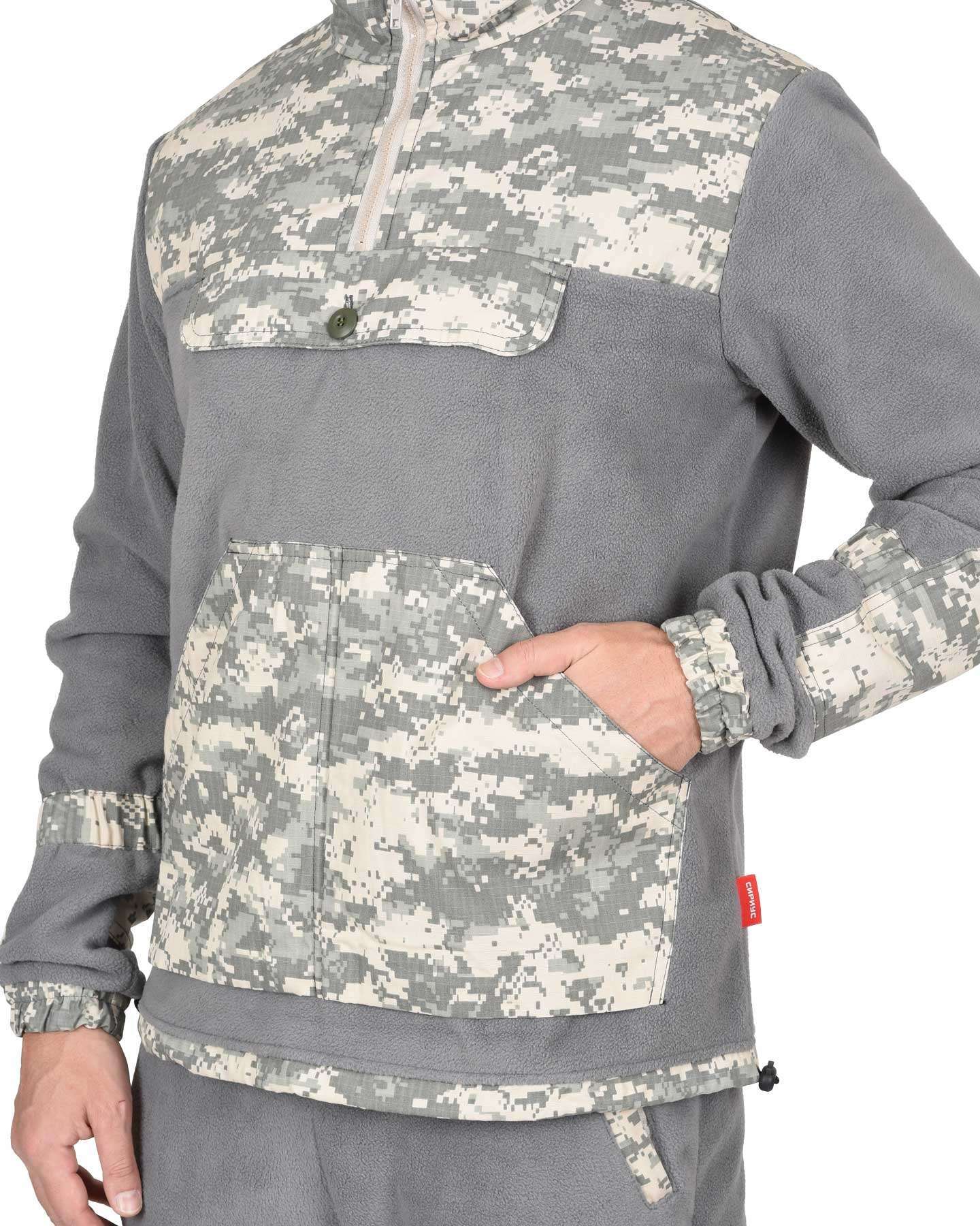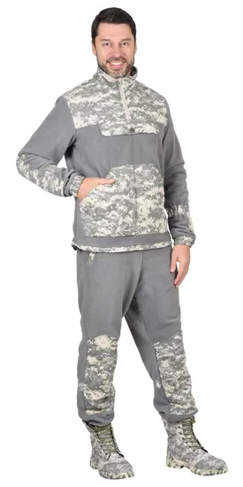 - Цвет: серый с отделкой КМФ Пустыня, что делает костюм универсальным для различных условий работы.