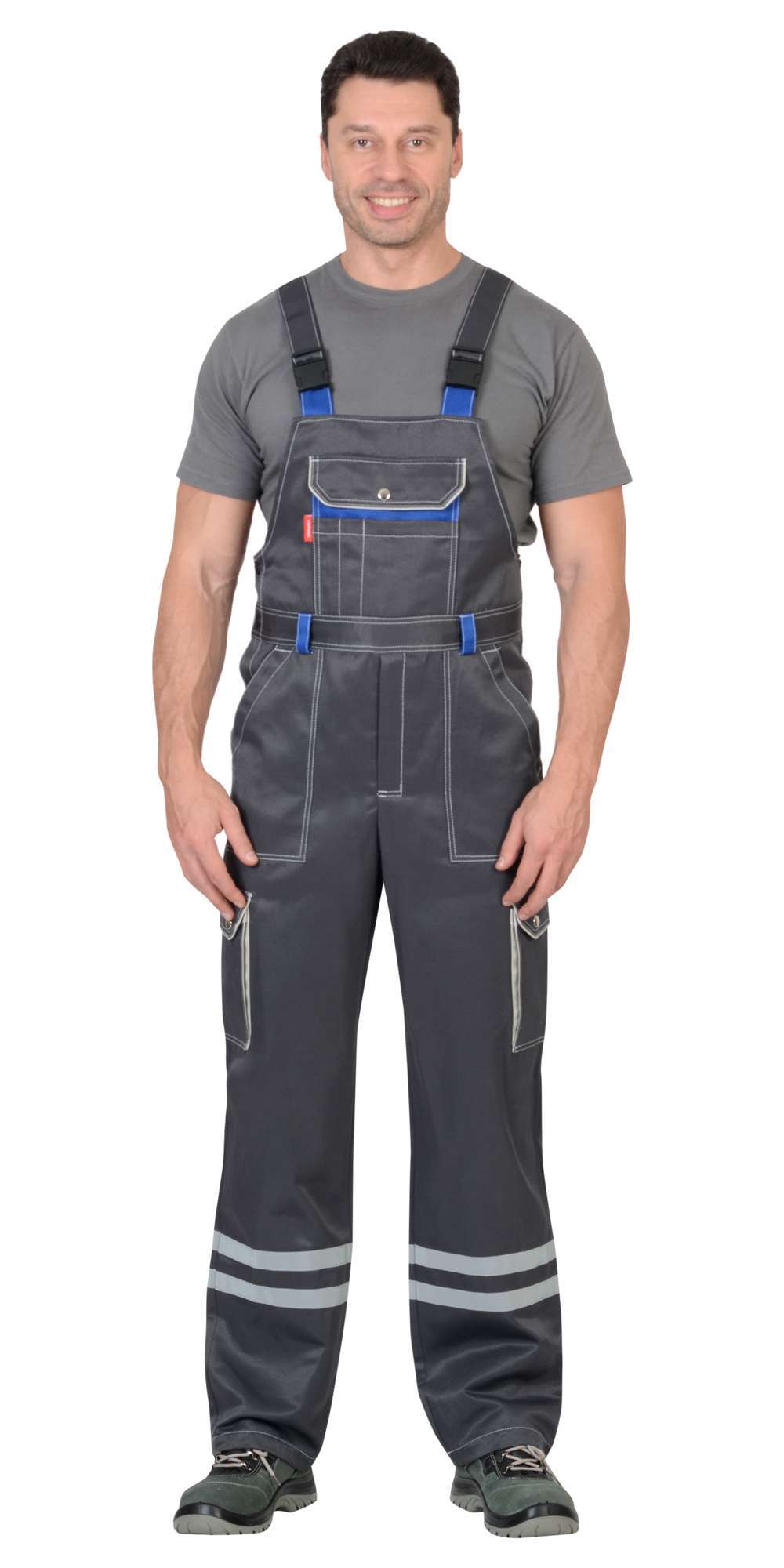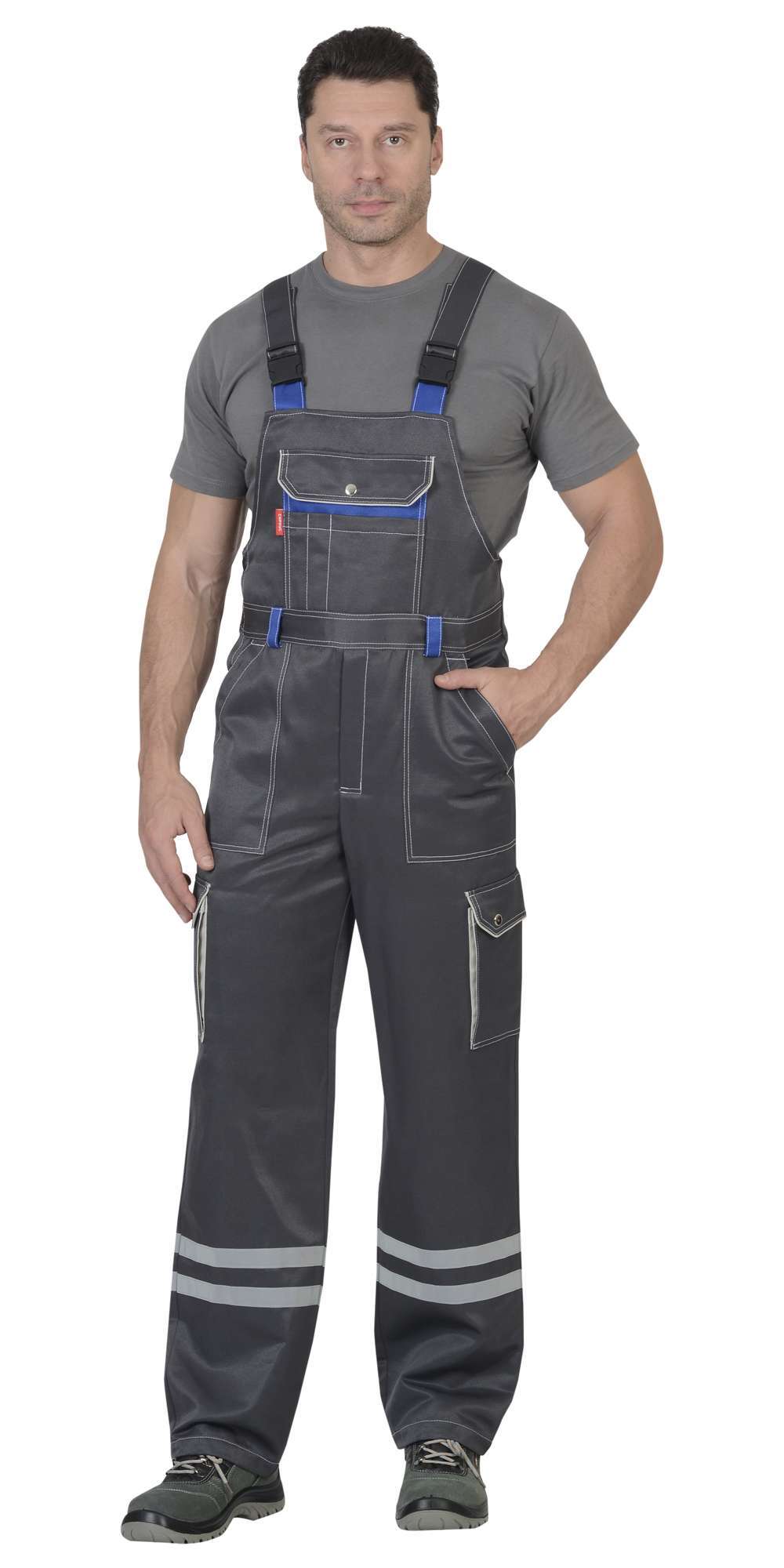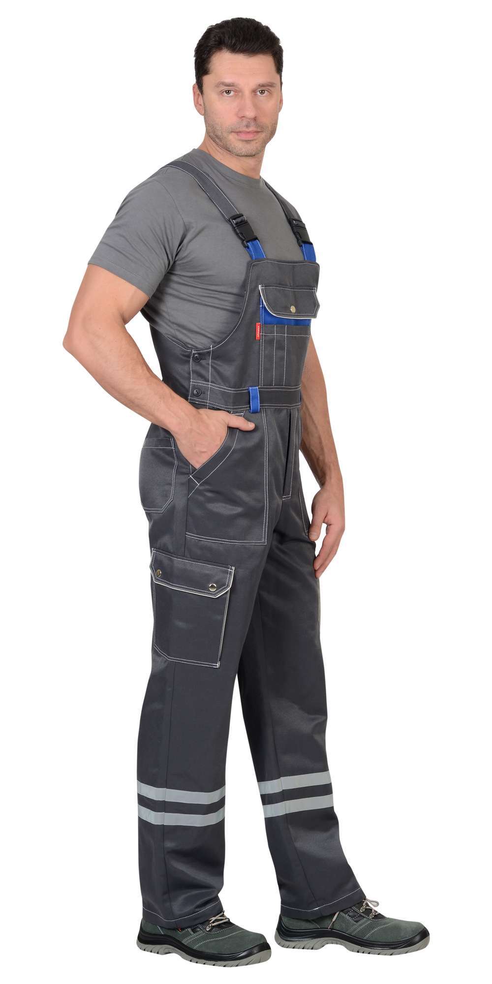 - Полукомбинезон: С застежкой на молнию и пуговицы, регулируемыми бретелями и множеством карманов.