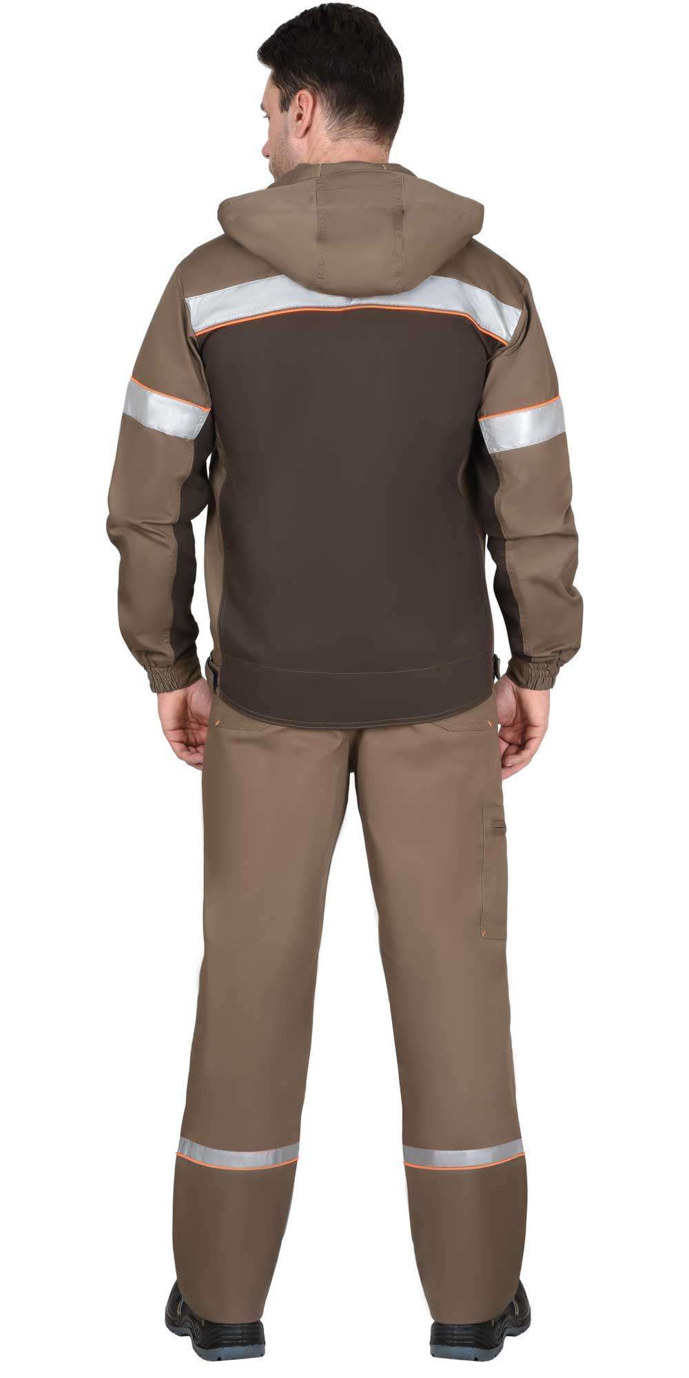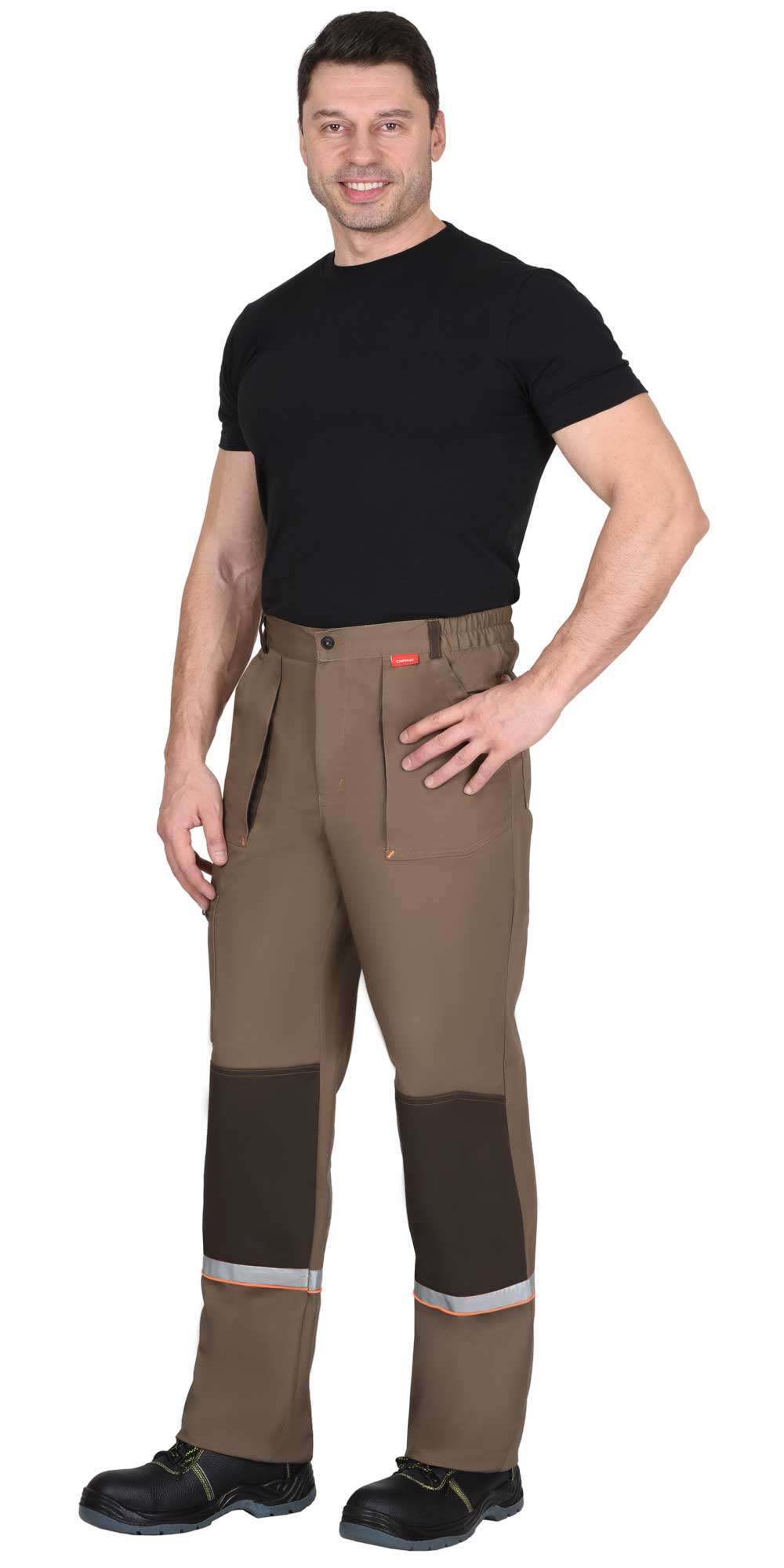 - Брюки: с притачным поясом, застежкой гульфика на молнию и боковыми швами с резинкой для регулировки объема.