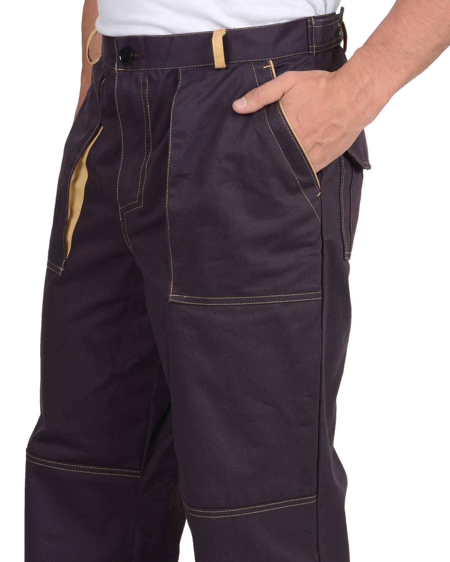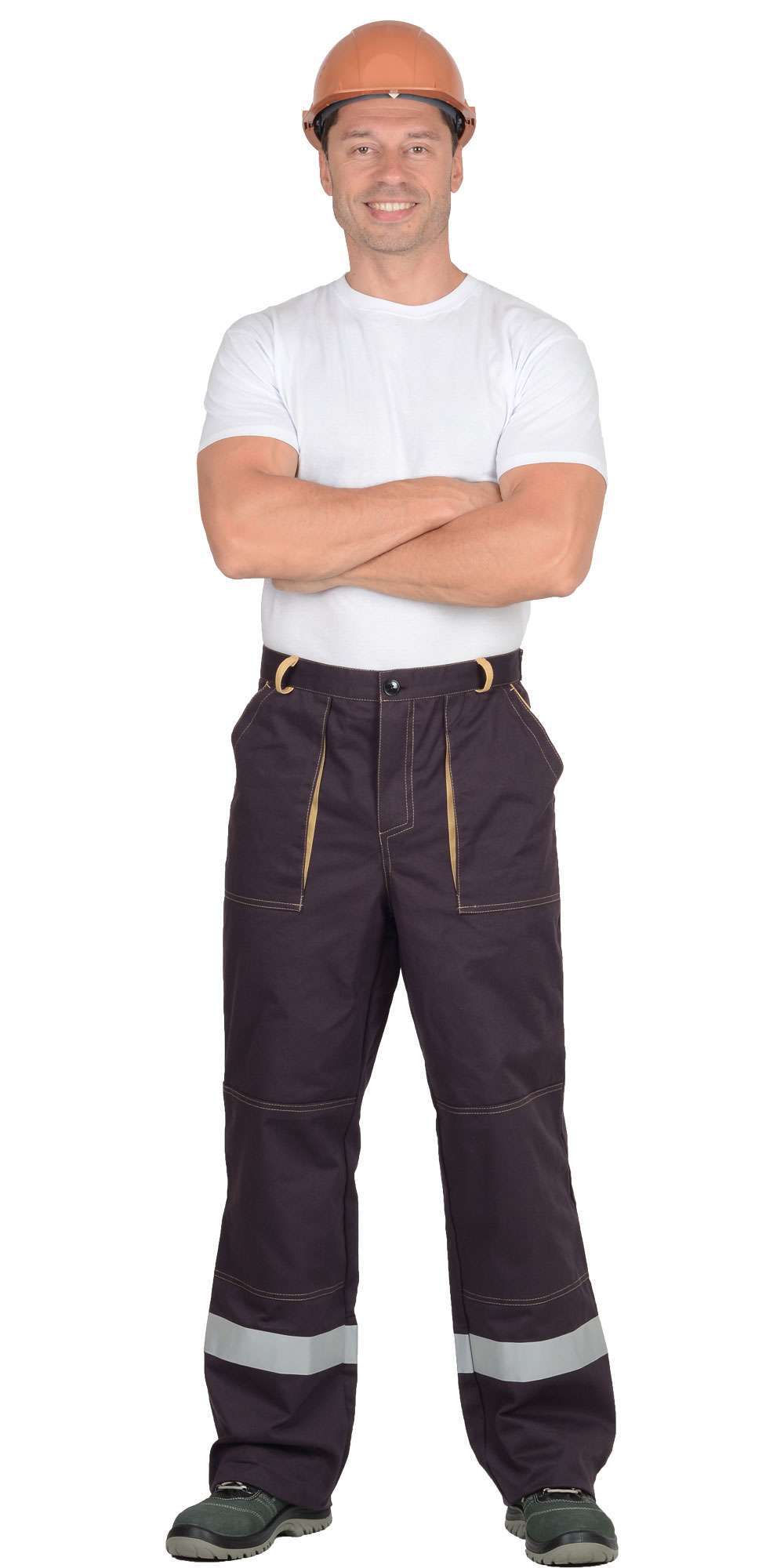Брюки оснащены усилительными накладками в области колен, что обеспечивает дополнительную защиту и долговечность при использовании в сложных условиях. Контрастные строчки добавляют стильный акцент, а соответствие ГОСТ 12.4.280-2014 гарантирует высокие стандарты качества.