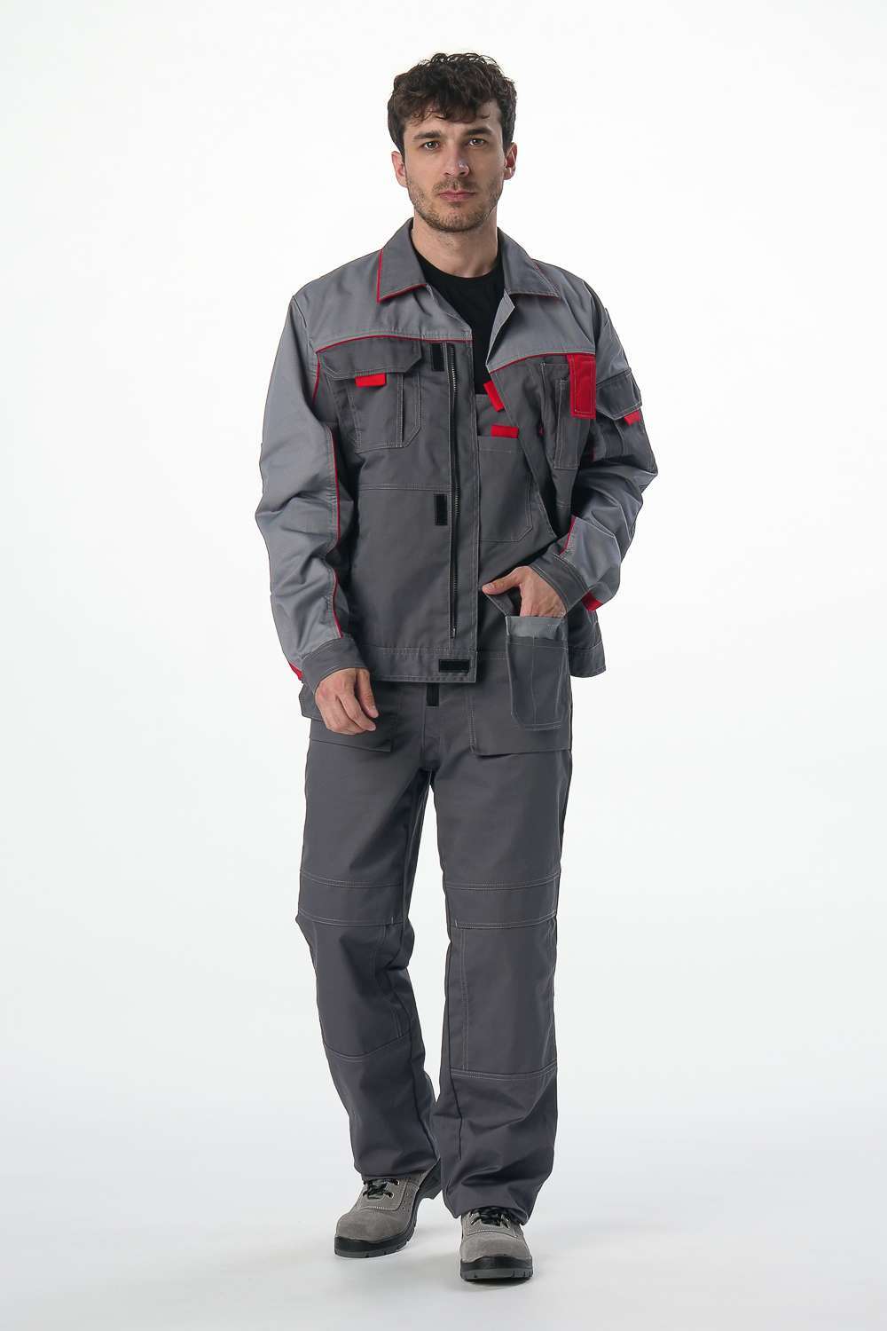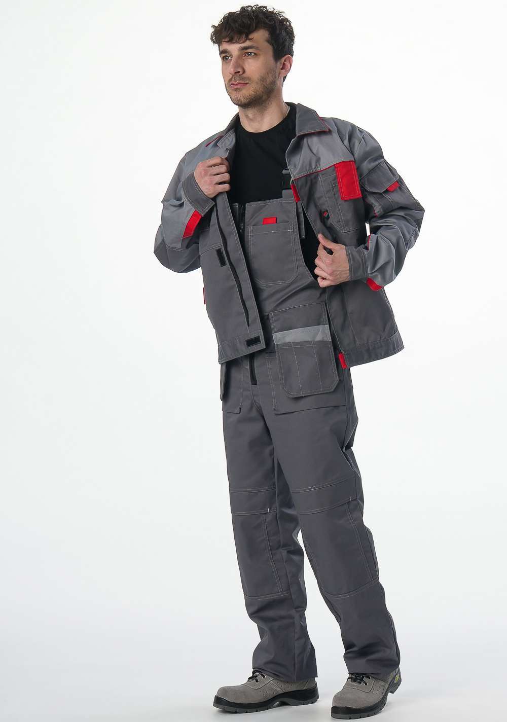 - Куртка: Прямого силуэта с объемными накладными карманами, что позволяет удобно хранить инструменты и мелкие предметы. Центральная застежка на молнии с ветрозащитным клапаном гарантирует защиту от ветра.