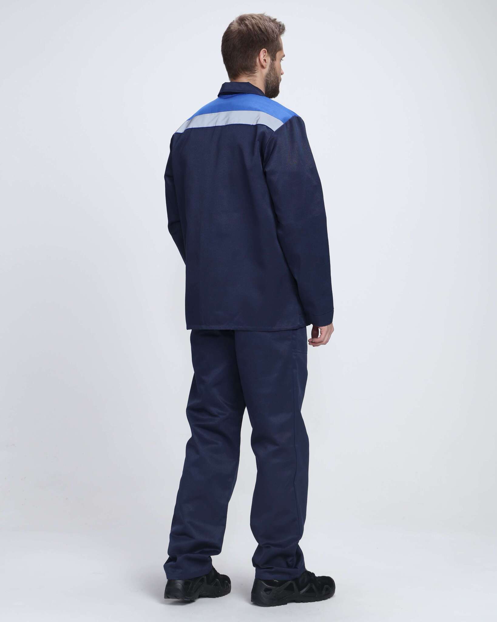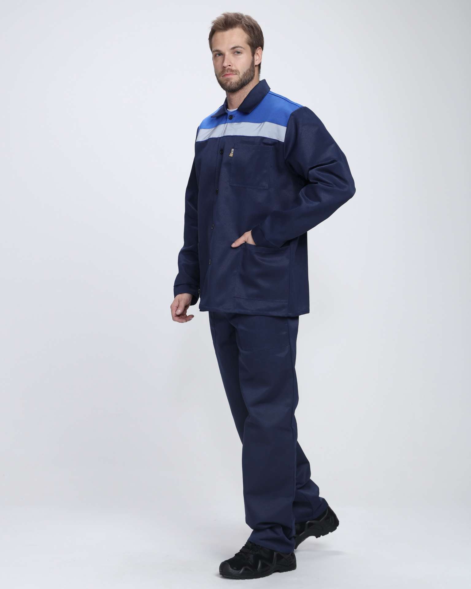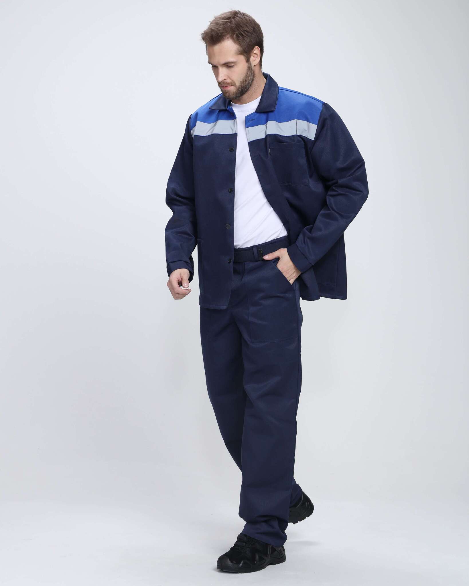 Костюм Стандарт/Дамаск СОП (тк. Смесовая, 210) в темно-синем и васильковом цветах — это идеальное решение для предприятий и заводов, стремящихся обеспечить своим сотрудникам не только стильный, но и функциональный рабочий комплект. Удлиненная куртка с центральной застежкой на петли и пуговицы, а также прямые брюки с удобным поясом, гарантируют комфорт и свободу движений в течение всего рабочего дня.