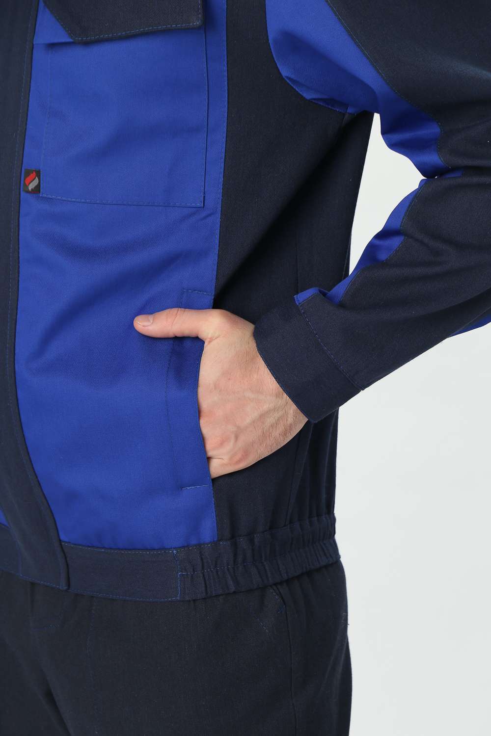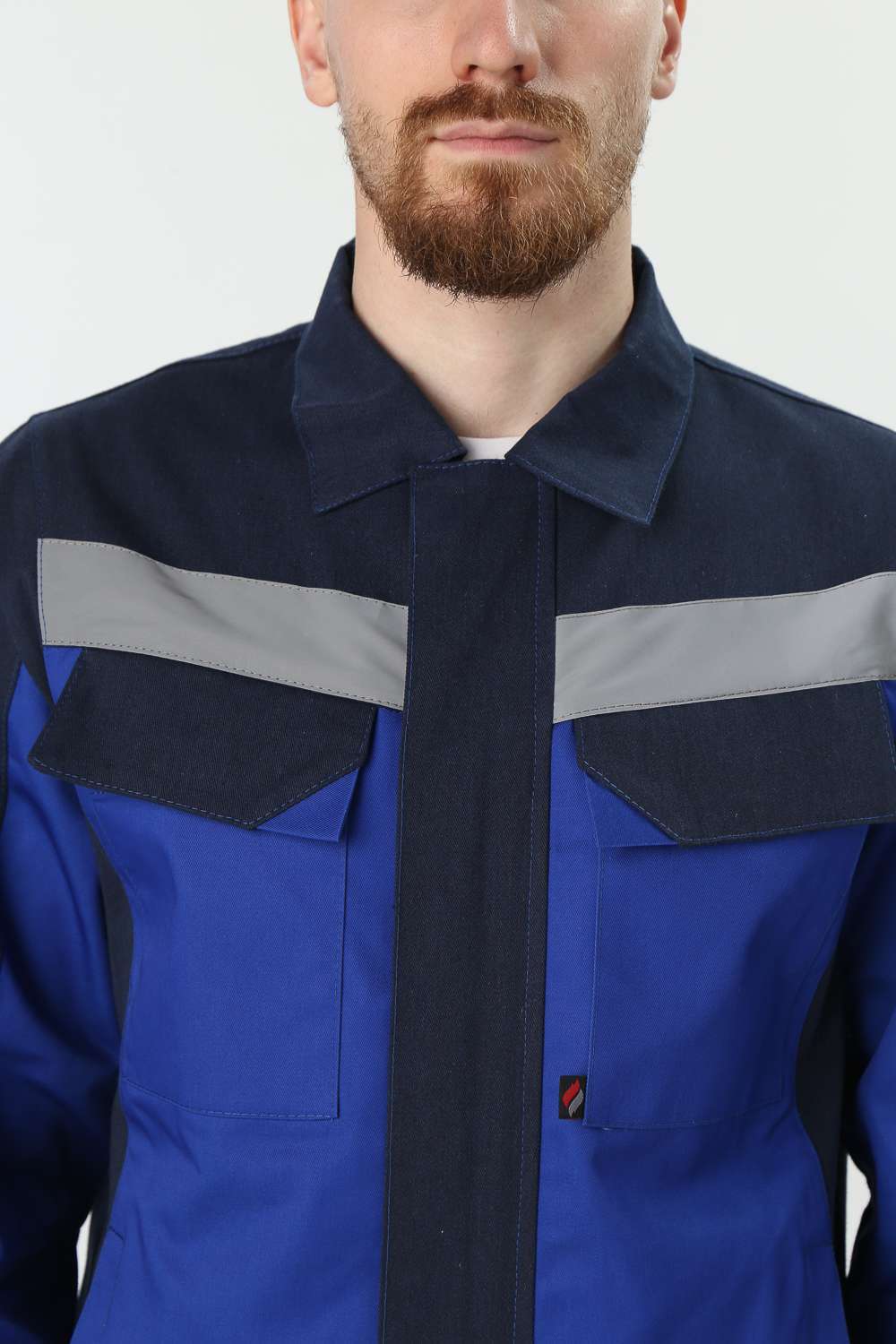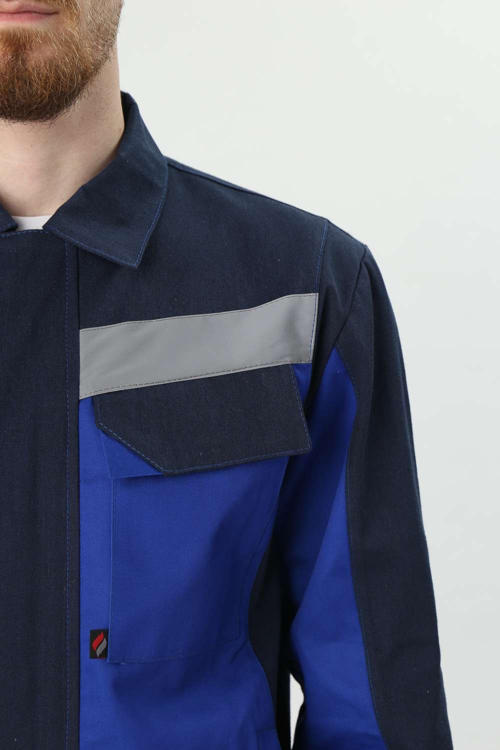 - Куртка: Укороченная на поясе, с отложным воротником и центральной застежкой на пуговицы. Нагрудные карманы с клапаном на липучке и удобные боковые карманы для хранения необходимых инструментов.