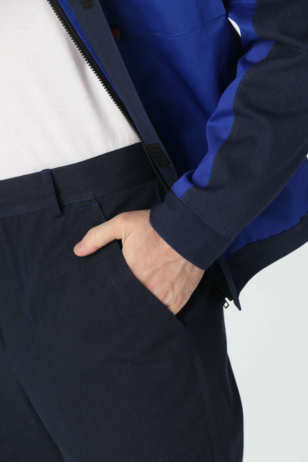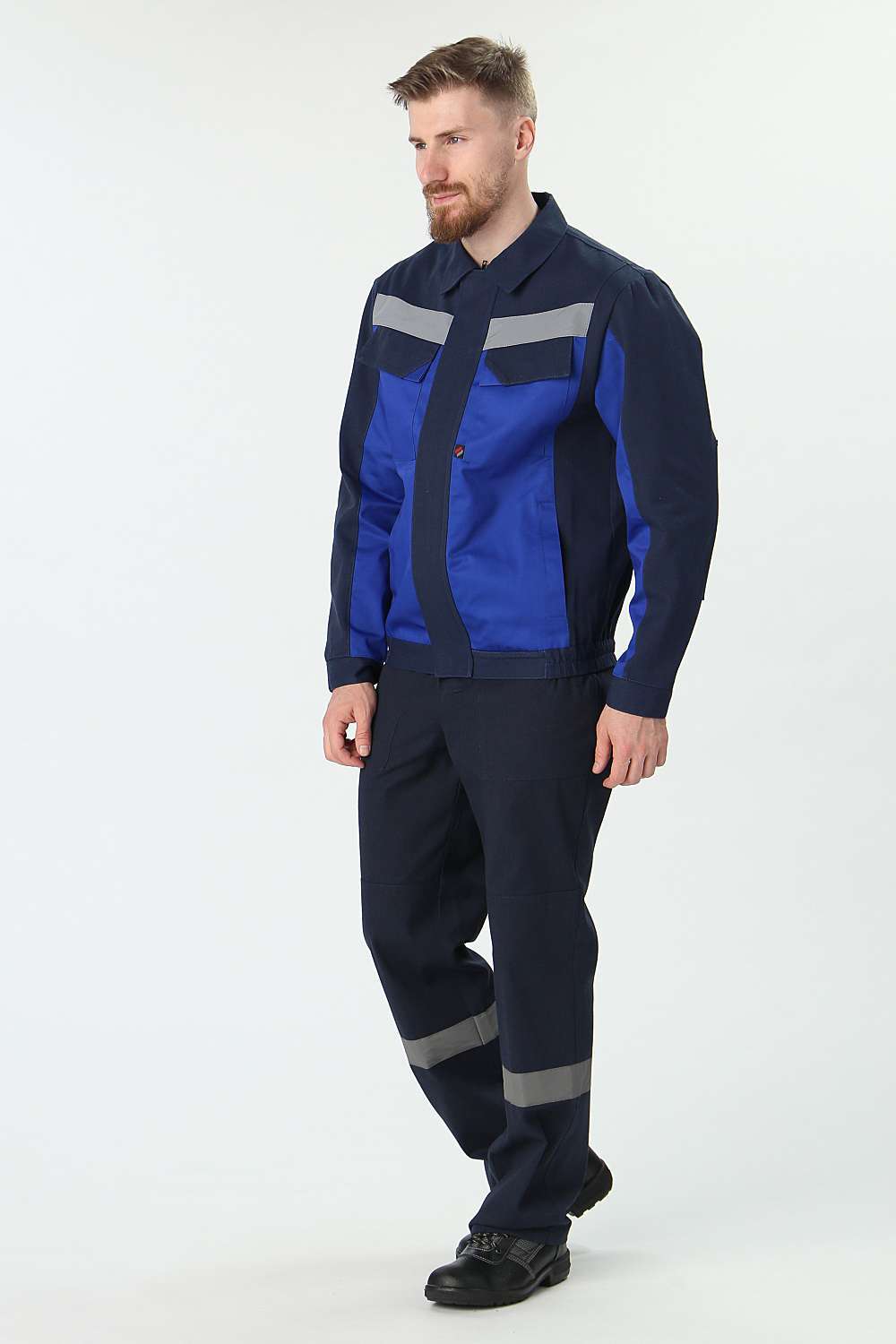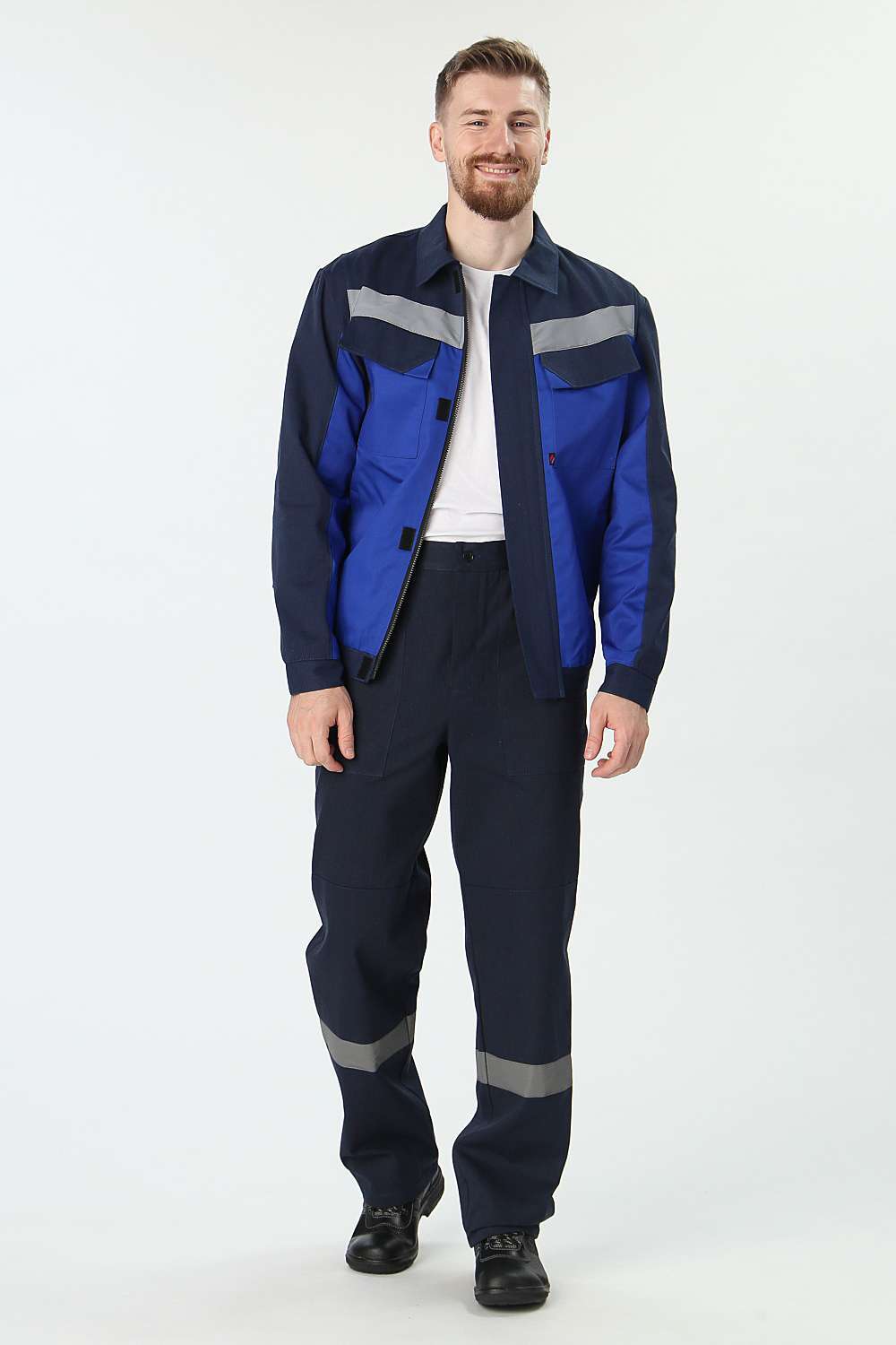 - Куртка: Укороченная на поясе, с отложным воротником и центральной застежкой на пуговицы. Нагрудные карманы с клапаном на липучке и удобные боковые карманы для хранения необходимых инструментов.