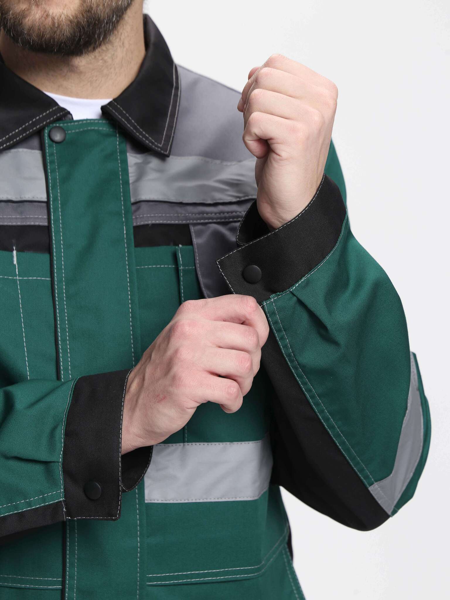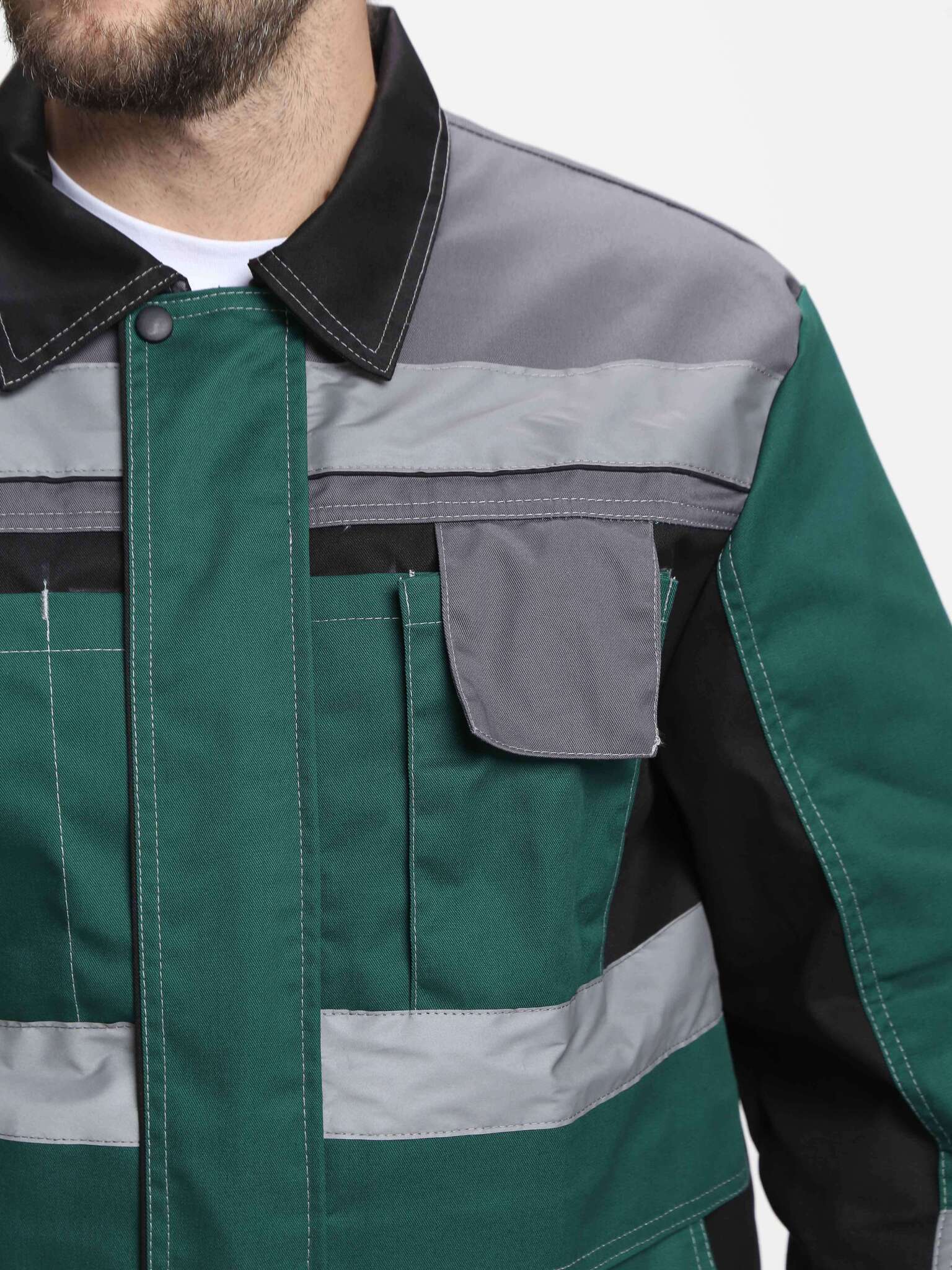 - Световозвращающие полосы по кокеткам, полочкам, спинке и рукавам.