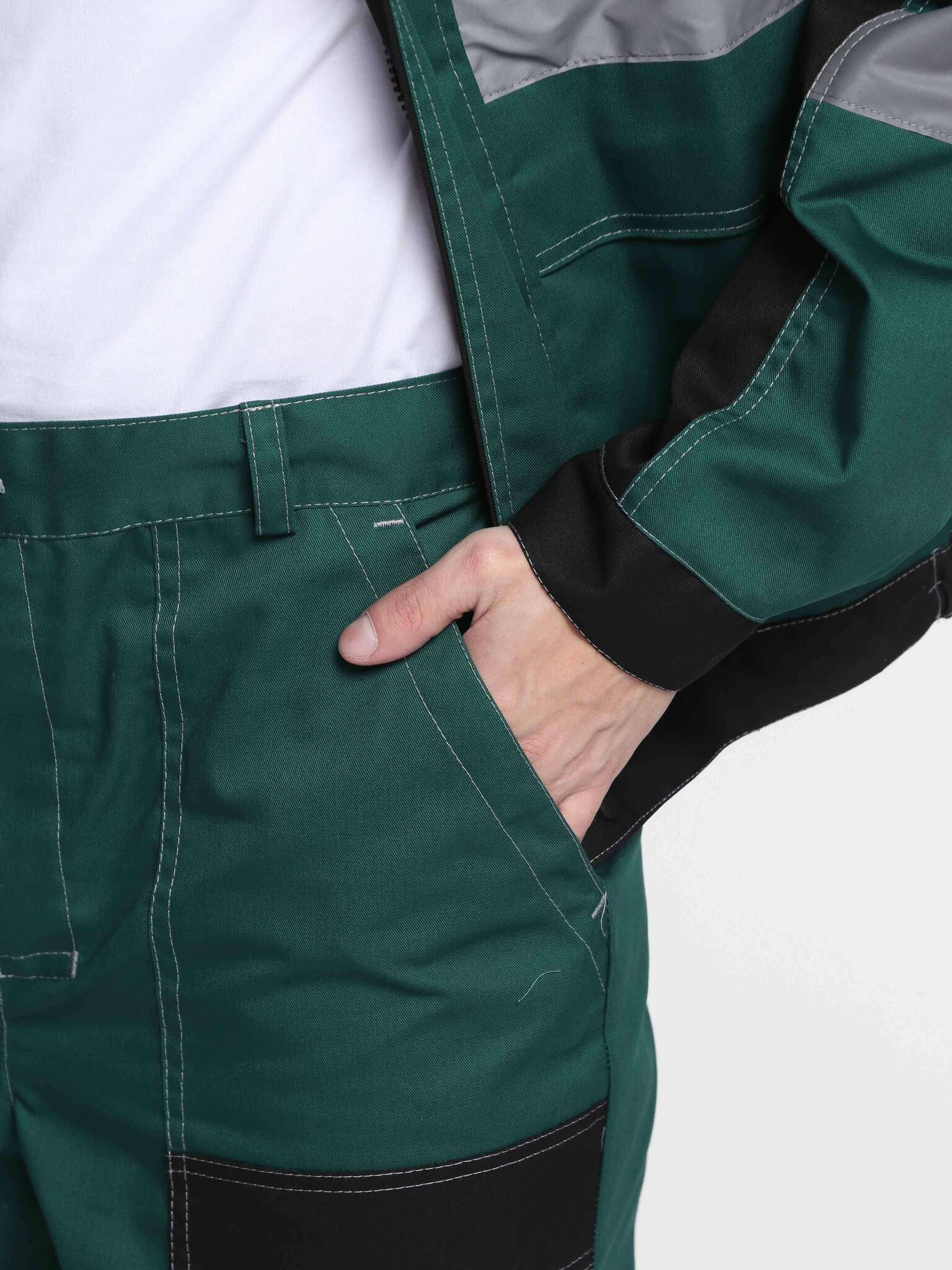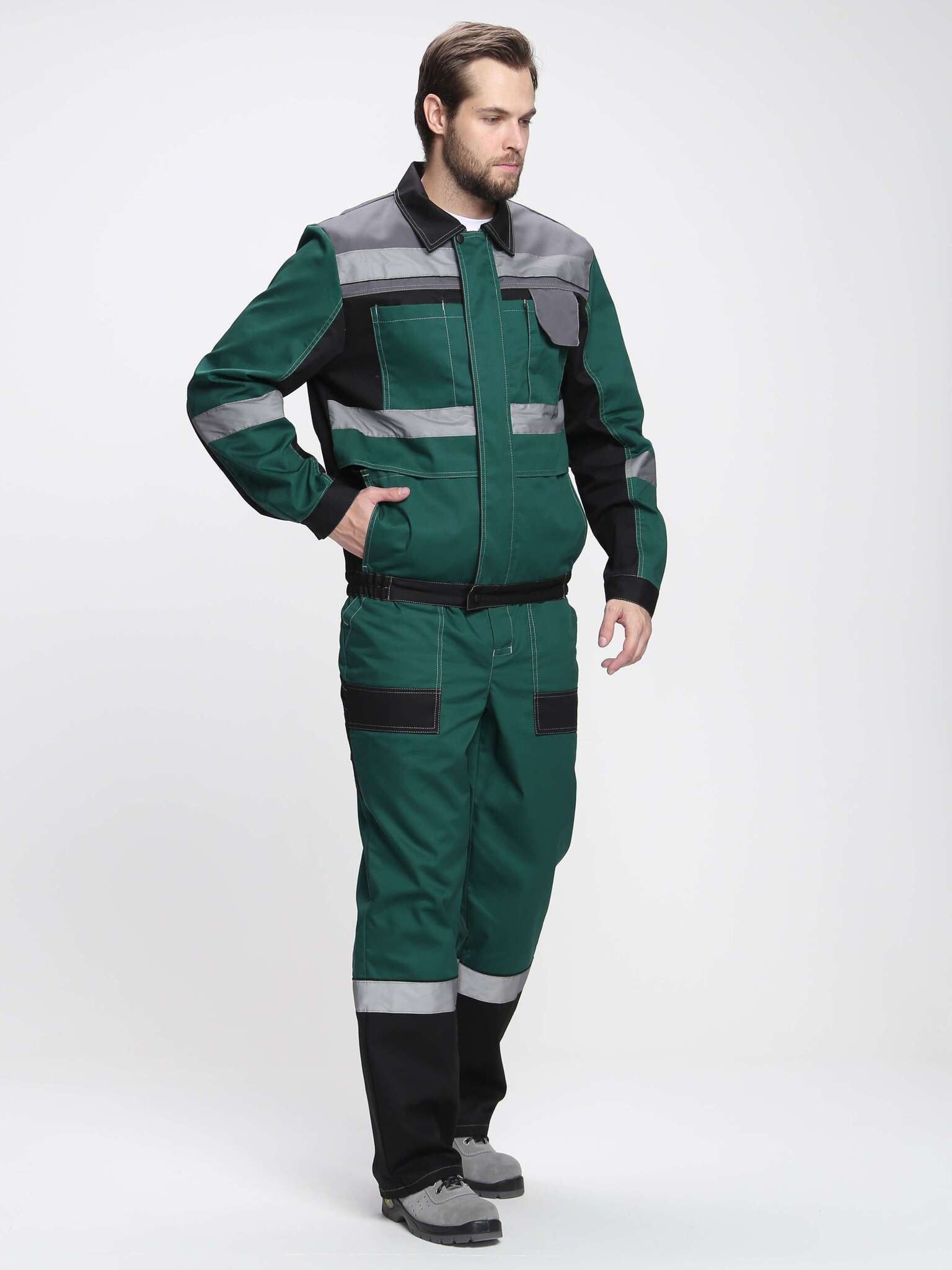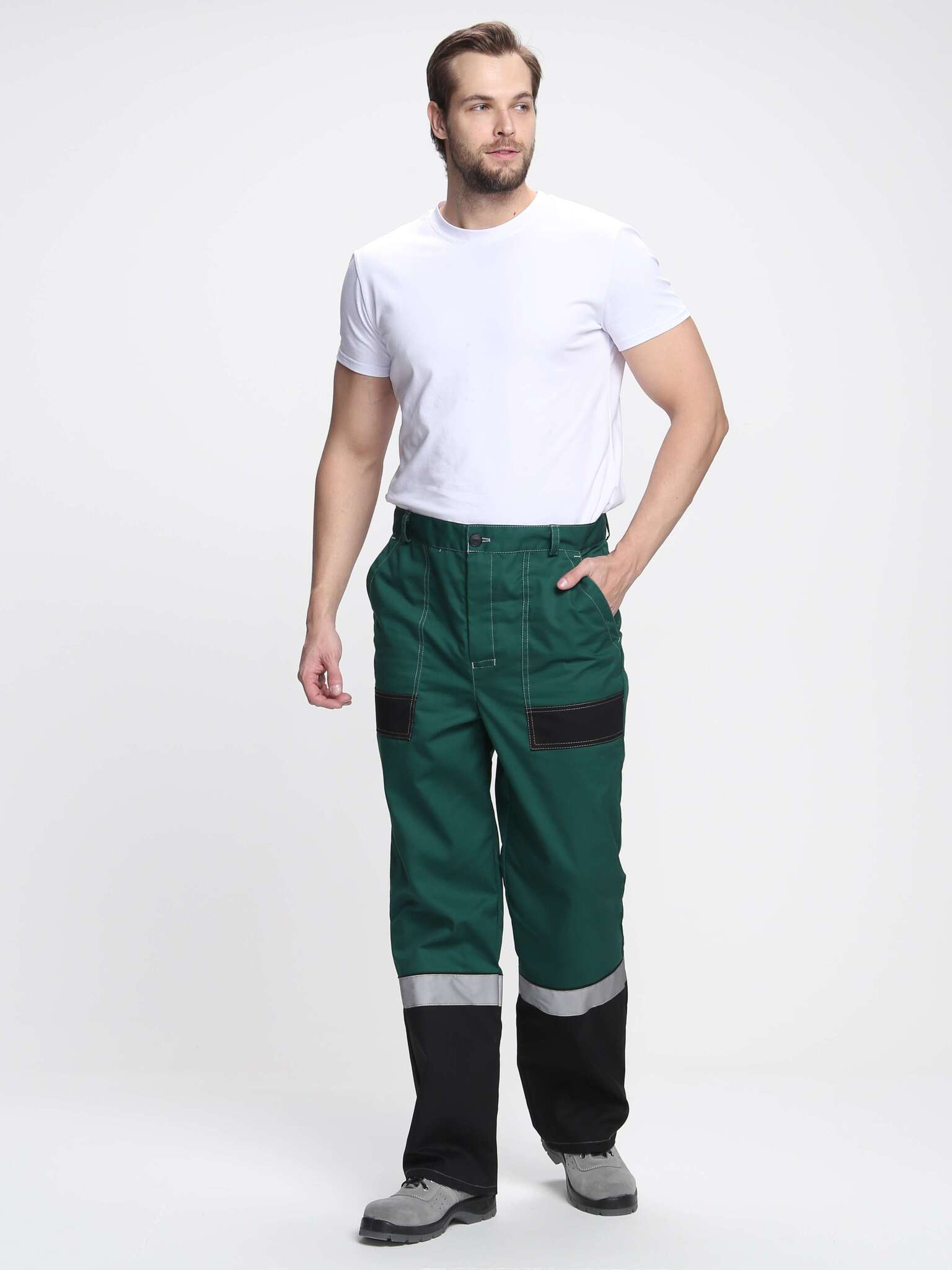 - Брюки: с боковыми накладными карманами и одним задним карманом, а также карманом для инструментов.