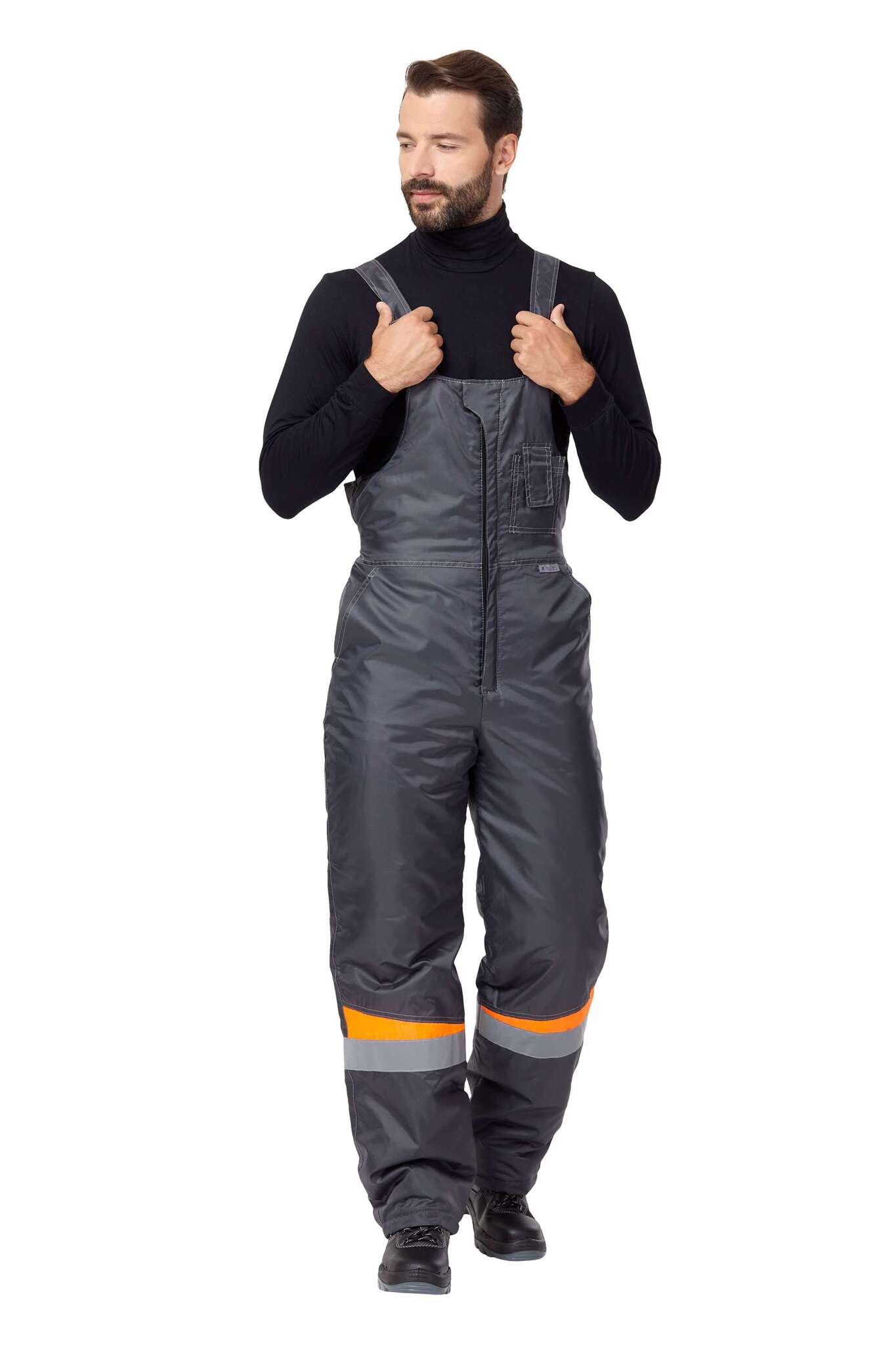 - Полукомбинезон: Удобная молния и планка на контактной ленте, а также нагрудный карман для телефона.