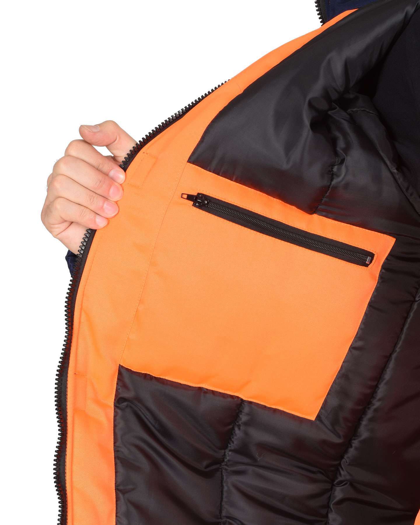 - Капюшон: Утепленный, втачной, для дополнительной защиты от холода.