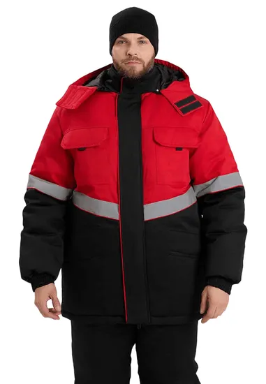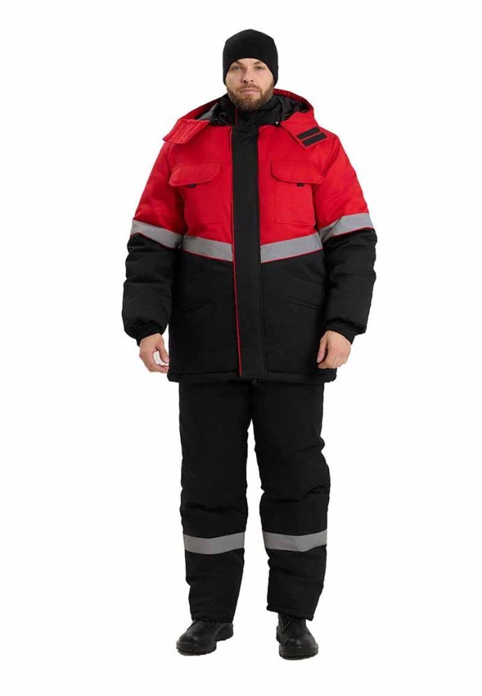 Костюм рабочий мужской утепленный "СЕВЕРНАЯ ШИРОТА" черный/красный
