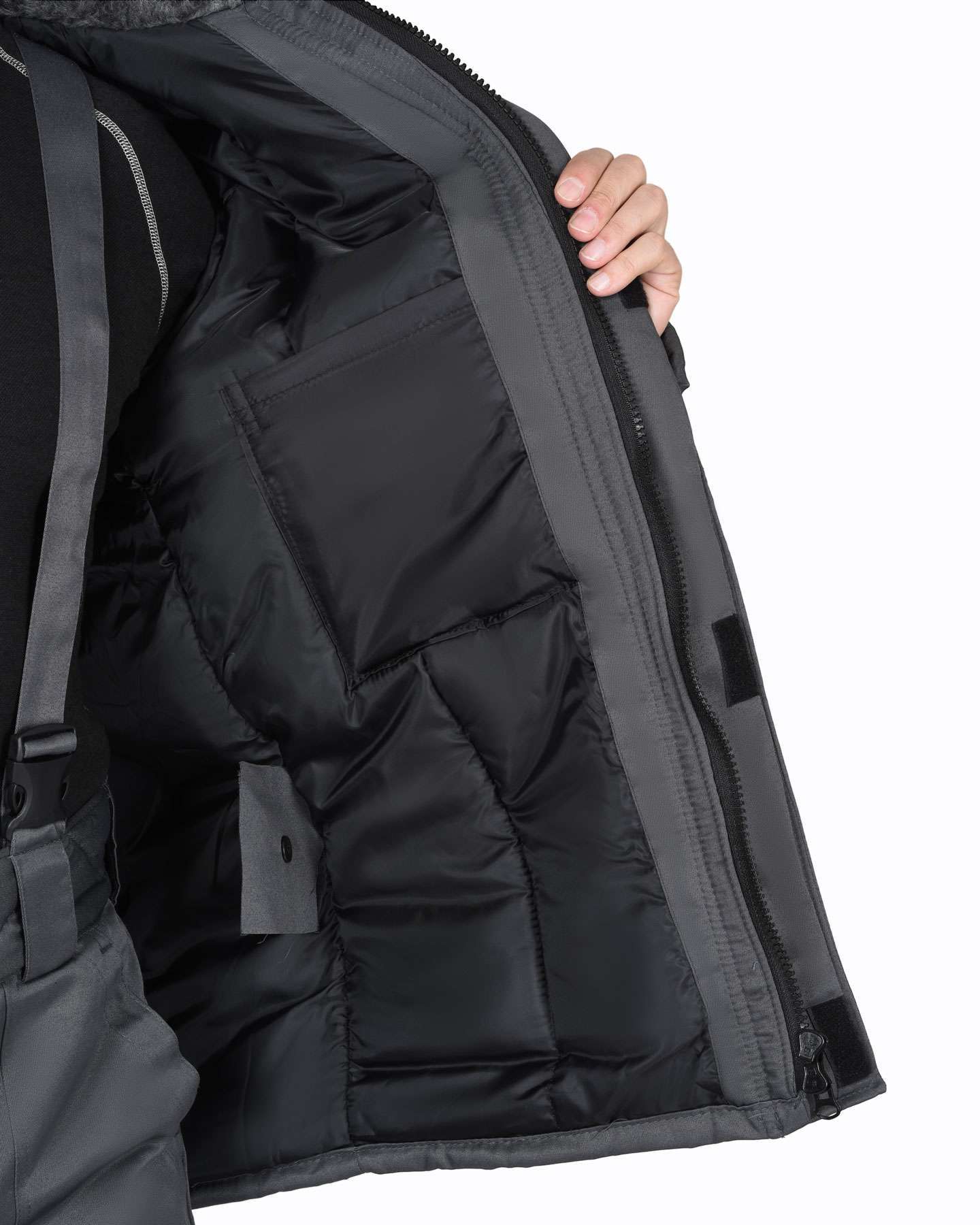 - Капюшон: Утепленный и пристегивающийся, защищает от непогоды.
