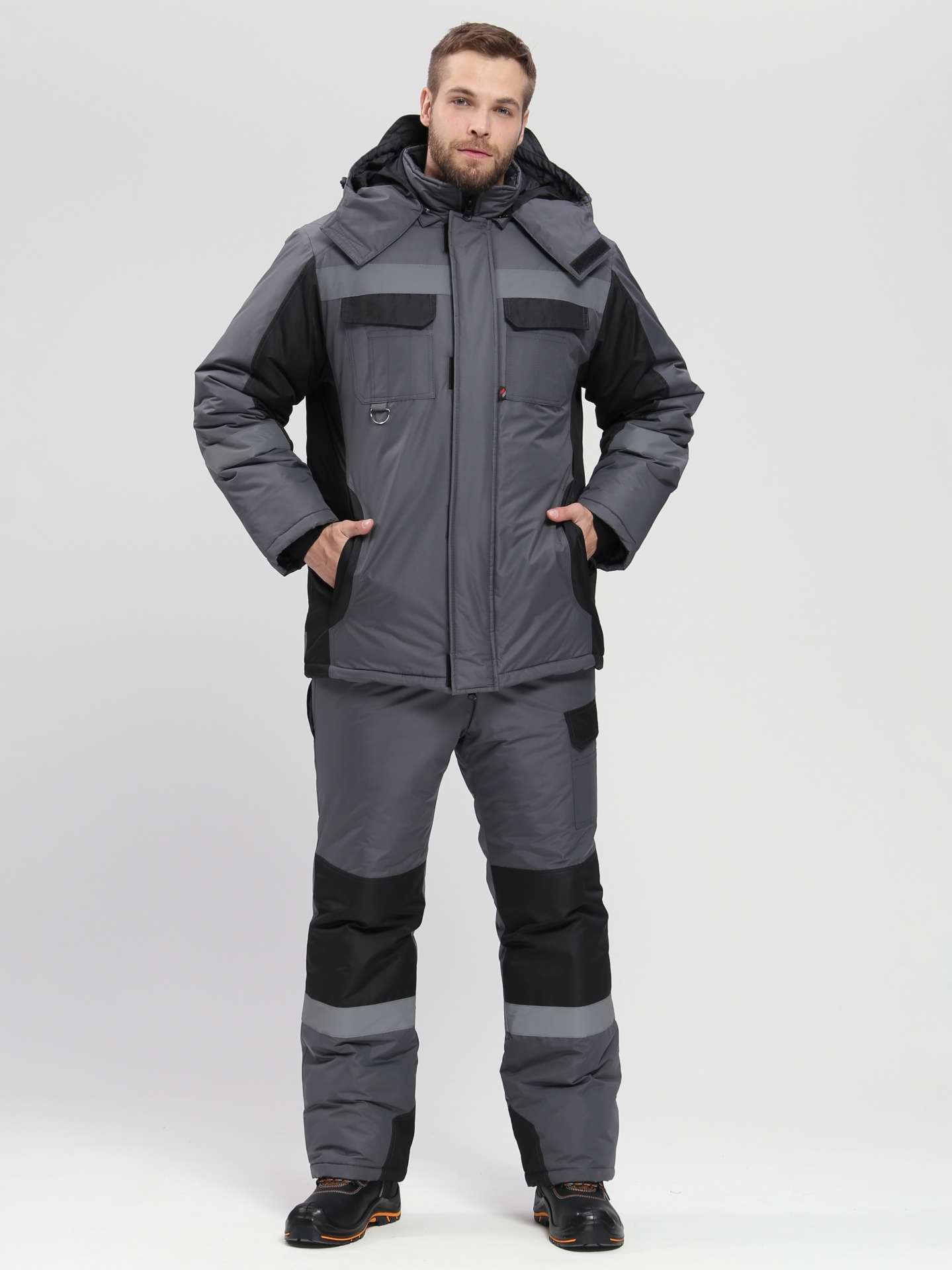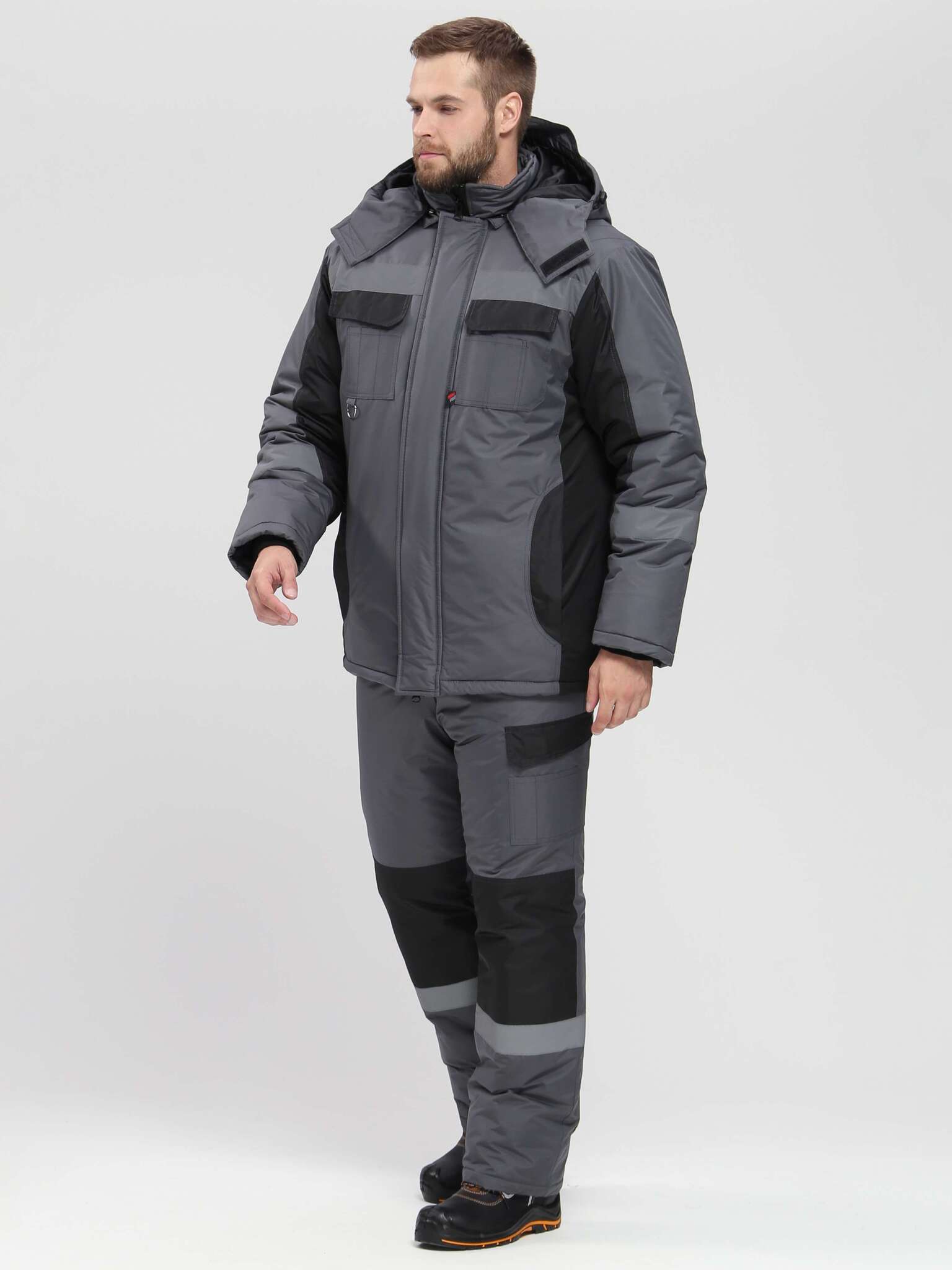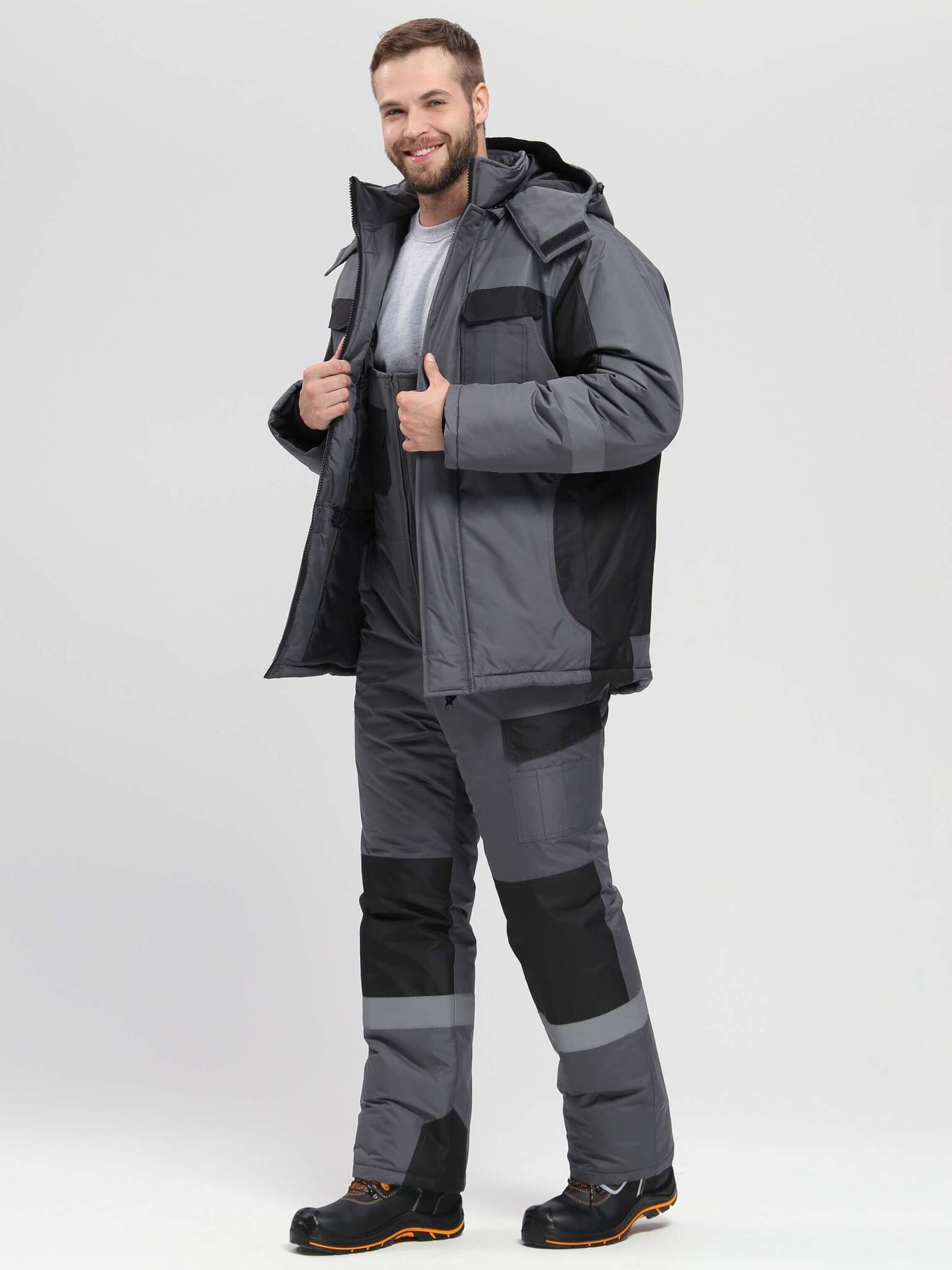 Костюм зимний Фаворит-Мега (тк.Таслан) п/к, т.серый/черный