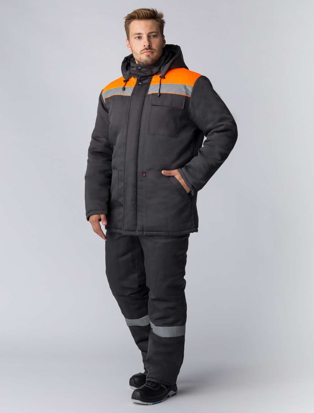Костюм зимний Партнер NEW (Смесовая, 210) п/к, темно-серый/оранжевый
