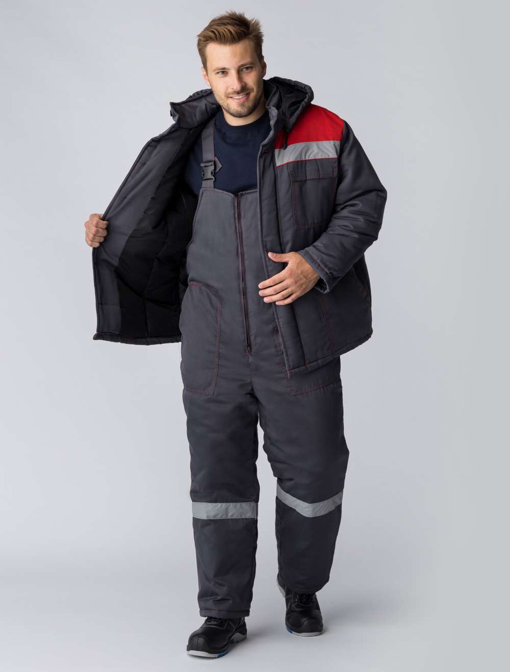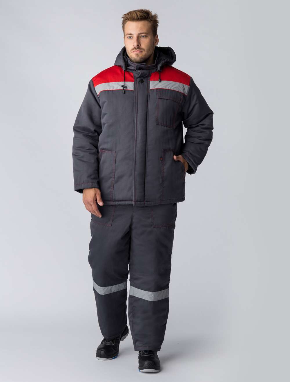 Костюм зимний Партнер (Смесовая, 210) п/к, т.серый/красный