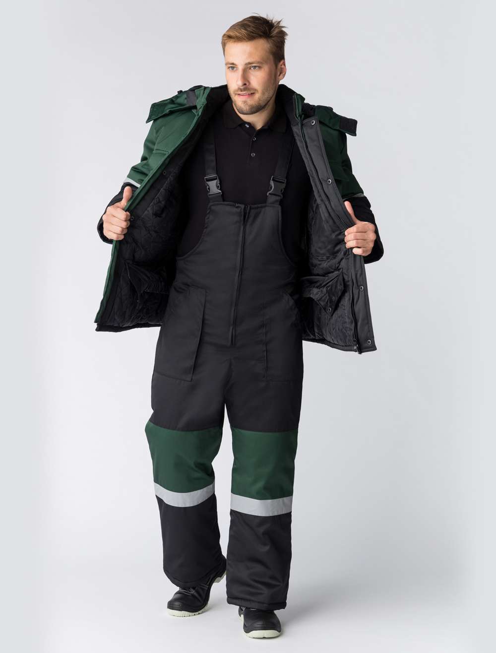 Костюм зимний Профи-Норд (Смесовая, 250) п/к, черный/зеленый