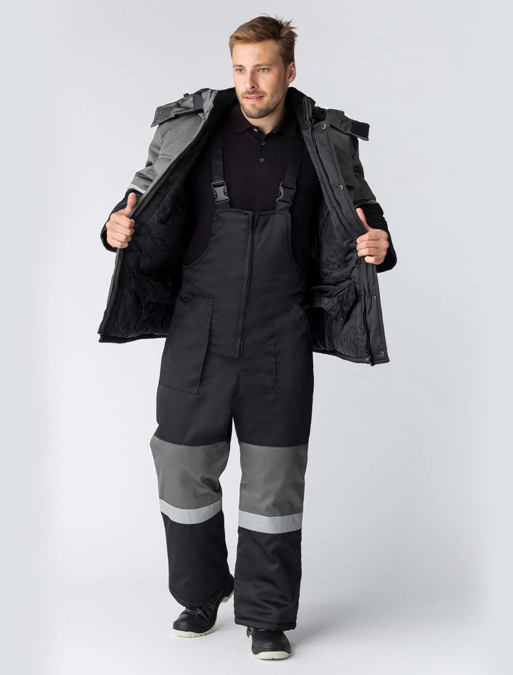 Костюм зимний Профи-Норд (тк.Смесовая,250) п/к, черный/серый