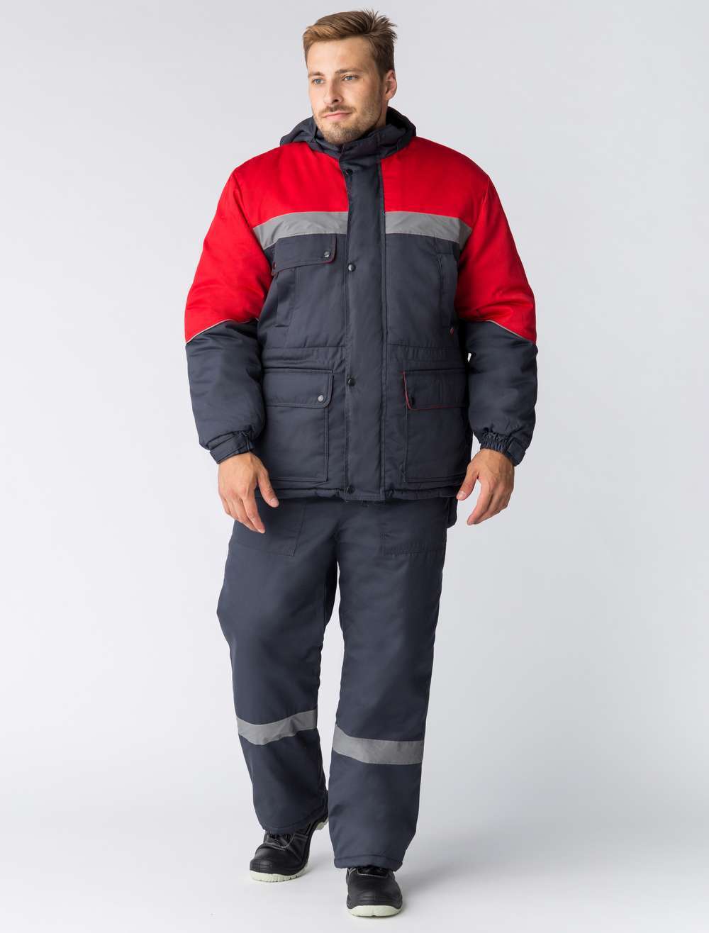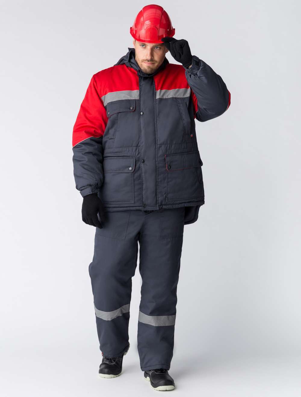 Костюм зимний Сибер СОП (тк.Балтекс, 210) п/к, т.серый/красный
