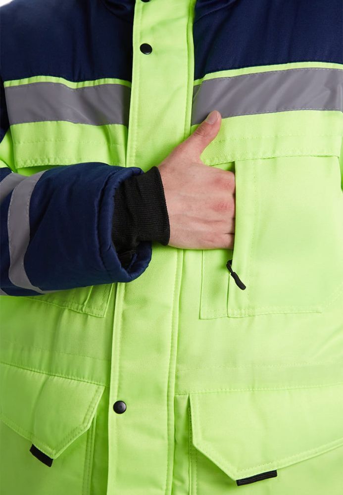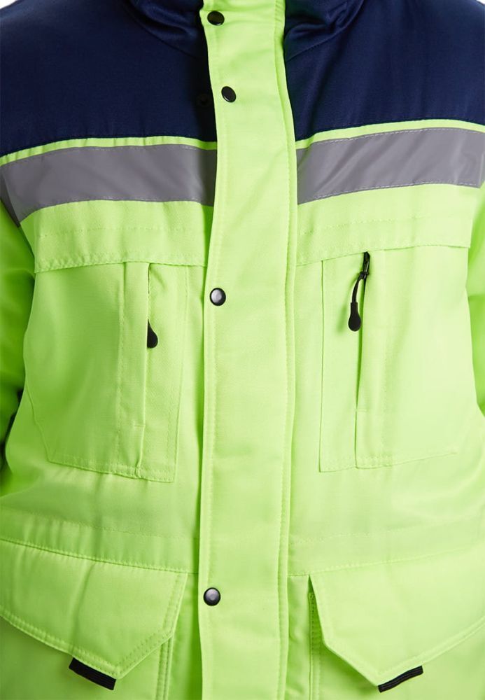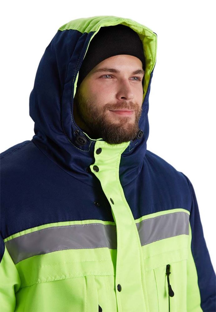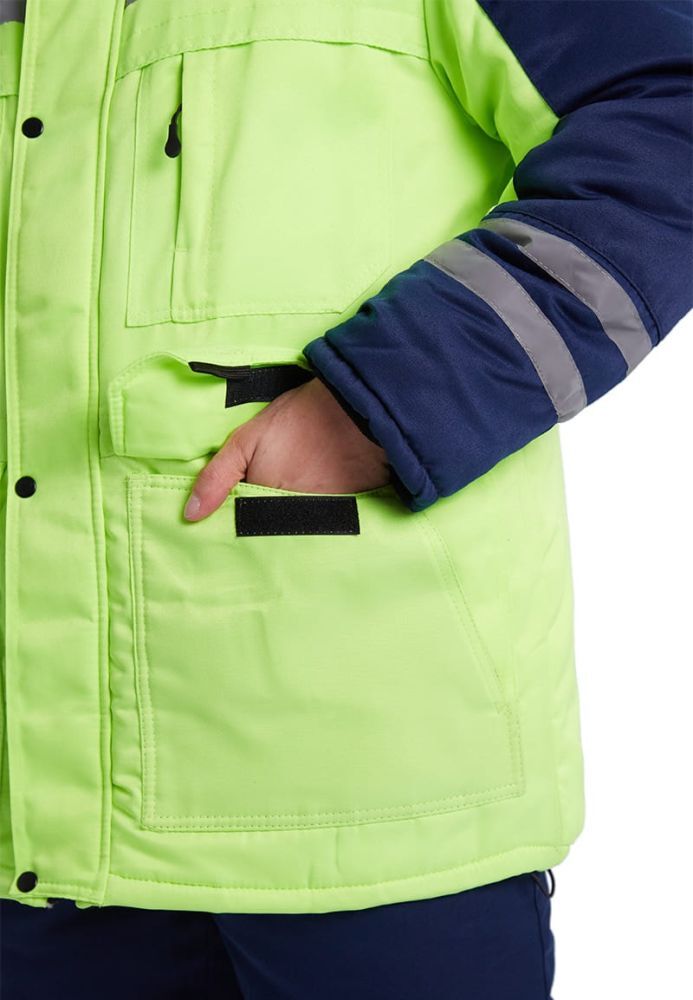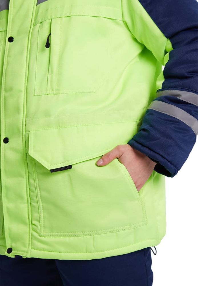 Костюм зимний ЗИМНИК — это идеальное решение для предприятий и заводов, которым необходима качественная и функциональная рабочая одежда. Удлиненная куртка с утепленным капюшоном и прямые брюки обеспечивают надежную защиту от холода и ветра, что делает этот костюм незаменимым в зимний период. Яркий лимонный цвет в сочетании с темно-синим не только привлекает внимание, но и повышает видимость работников в условиях низкой освещенности.