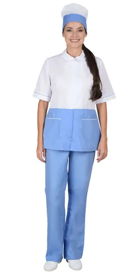 Костюм СИРИУС-СТЕФАНИ женский белый с голубым (СТ) – идеальное решение для медицинских учреждений