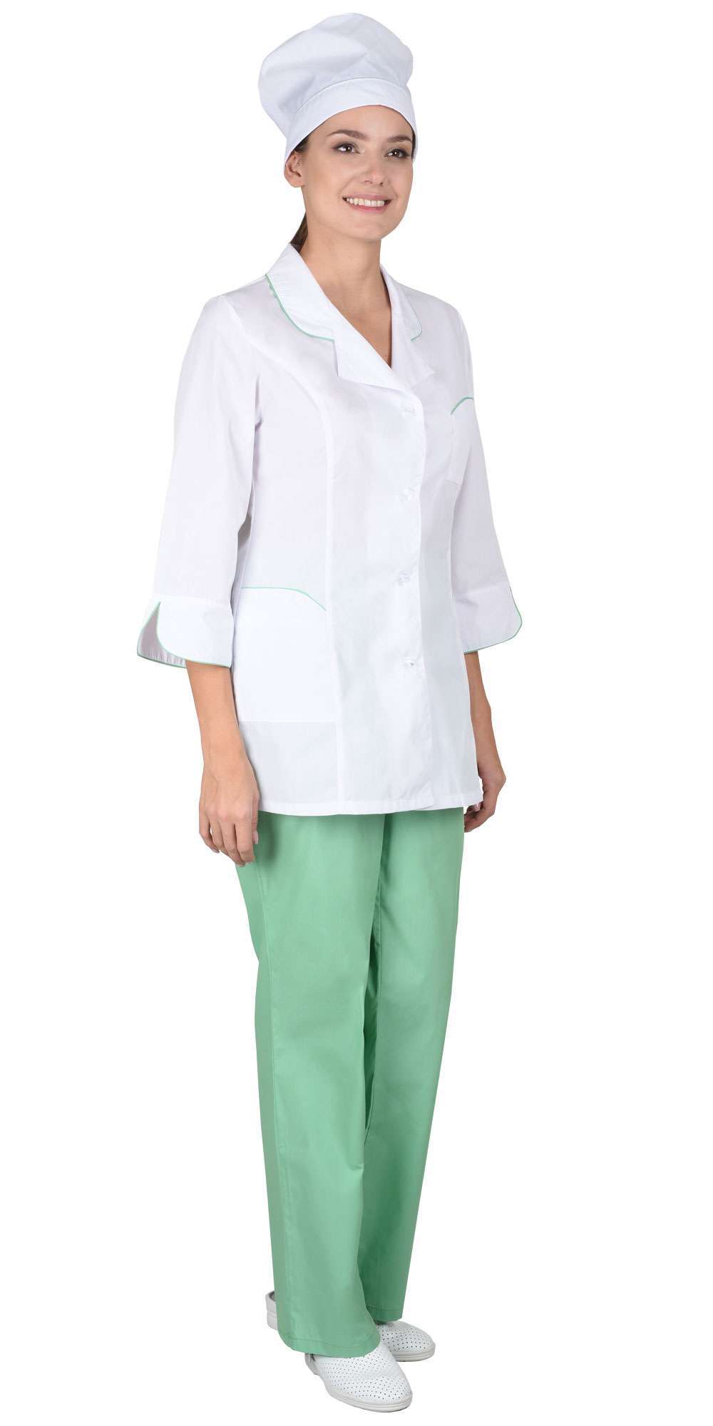 - Цвет: Белый с зеленым отделкой, что придает костюму свежий и профессиональный вид.