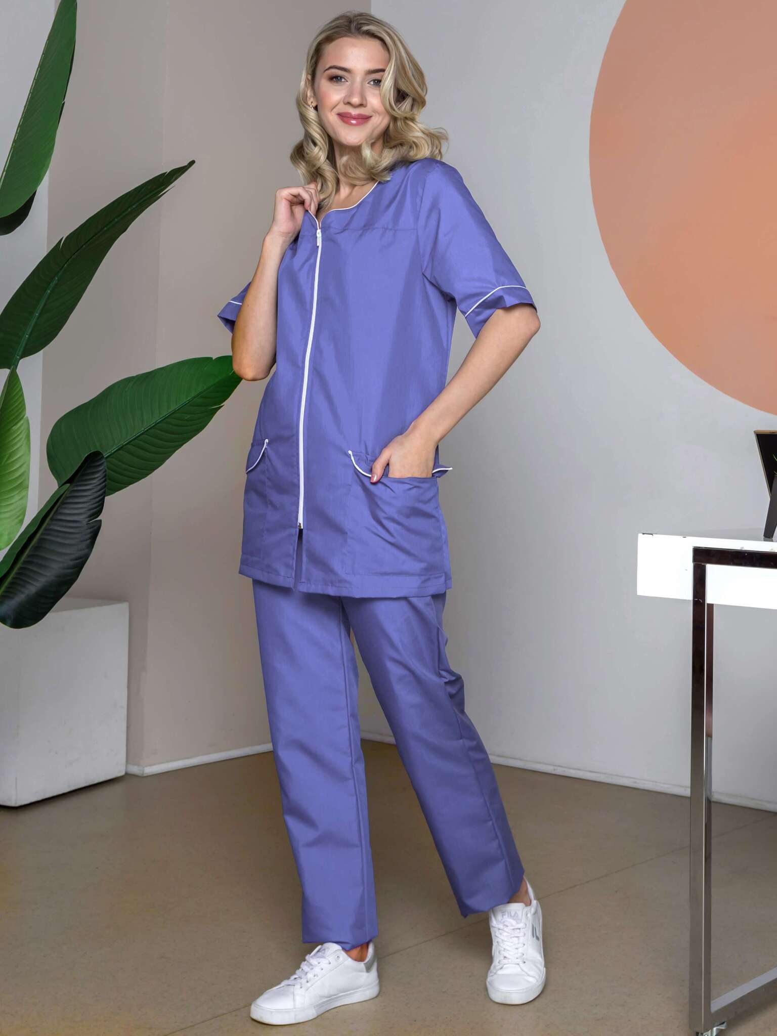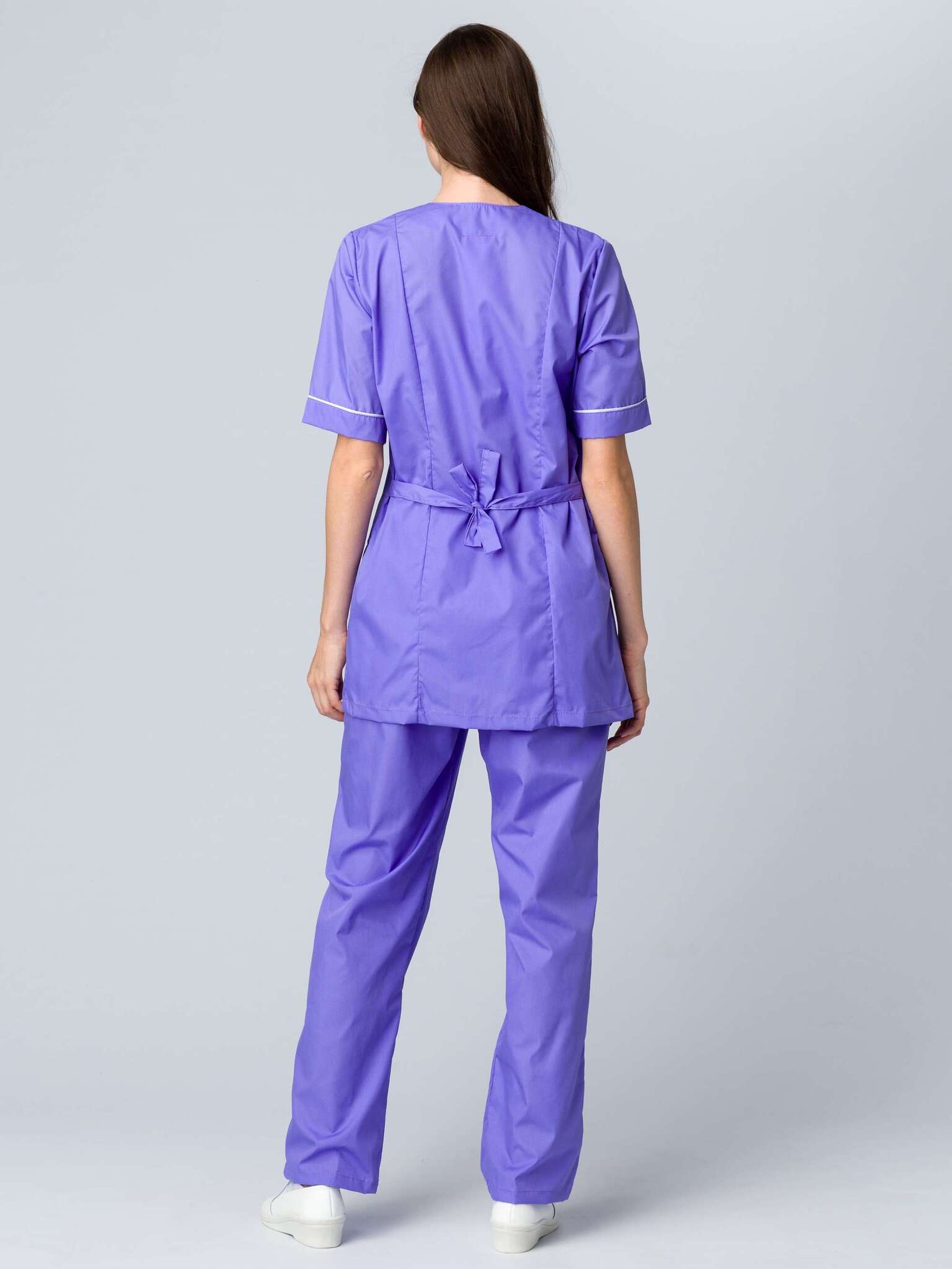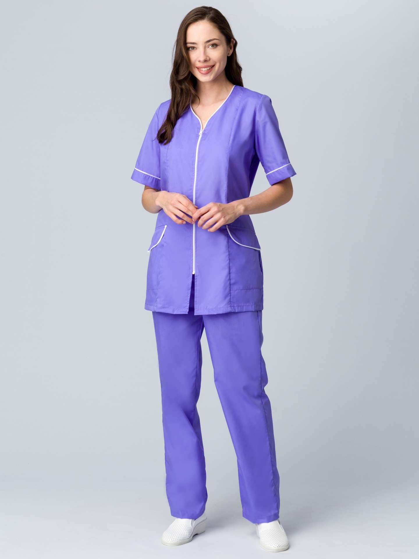 Костюм «Вера» с брюками в нежном сиреневом цвете — это не просто одежда, а стильный и функциональный элемент рабочего гардероба. Он сочетает в себе элегантный дизайн и практичность, что делает его идеальным выбором для предприятий и заводов, стремящихся к созданию профессионального имиджа своих сотрудников.